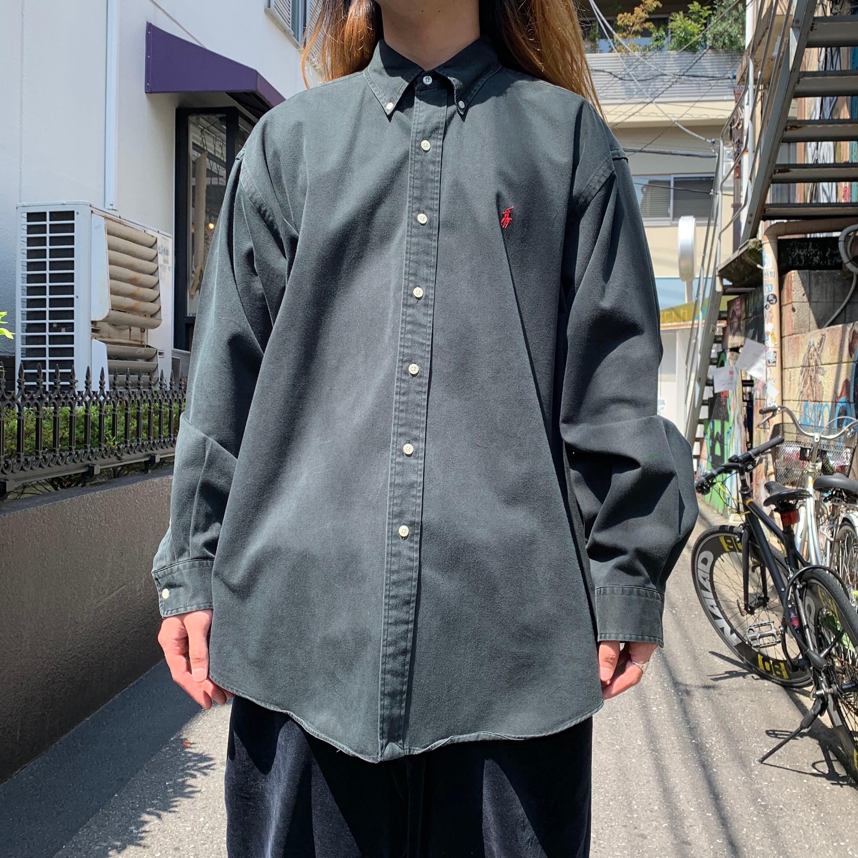 1990s ラルフローレン ワンポイント BDシャツ ブラック XL