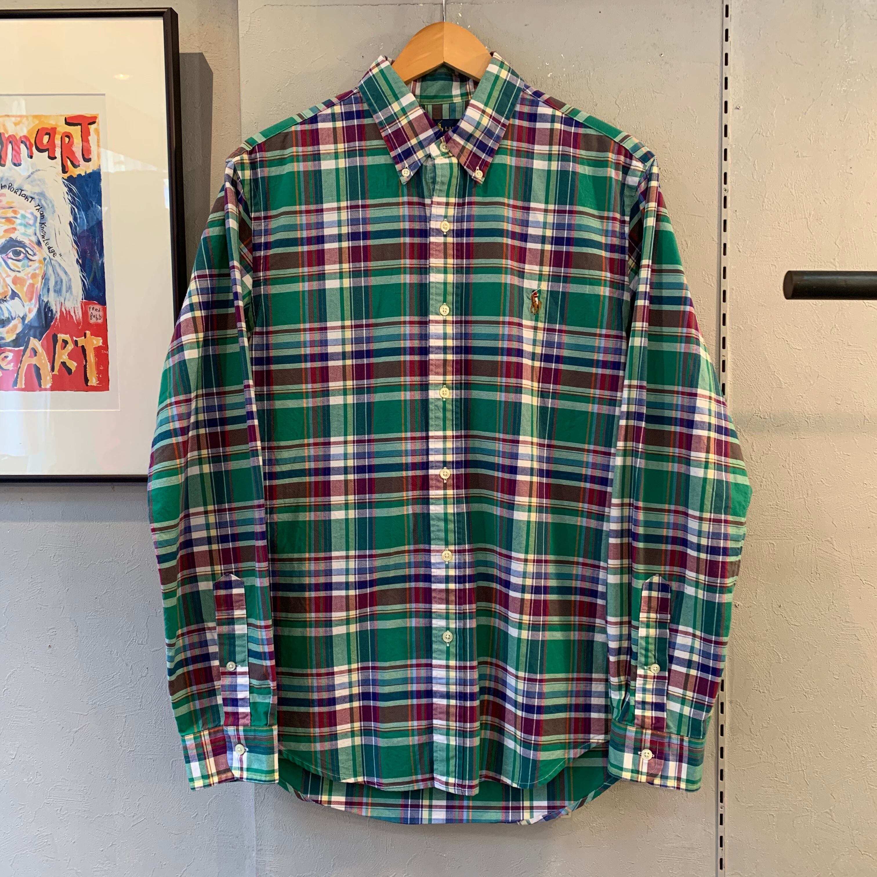 1990s ラルフローレン チェックBDシャツ グリーン M