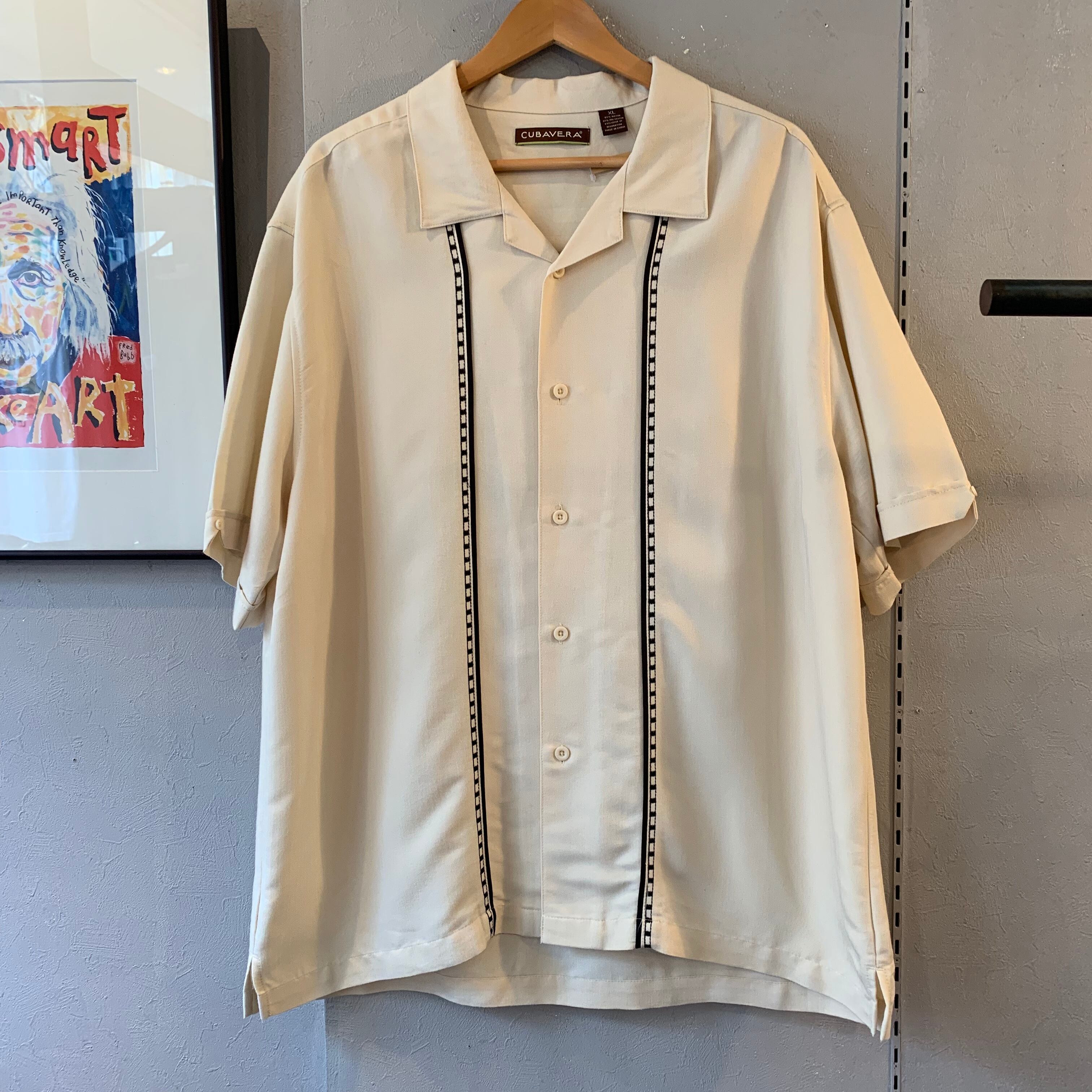 1990s 切替 レーヨンシャツ 刺繍デザイン 半袖 アイボリー XL