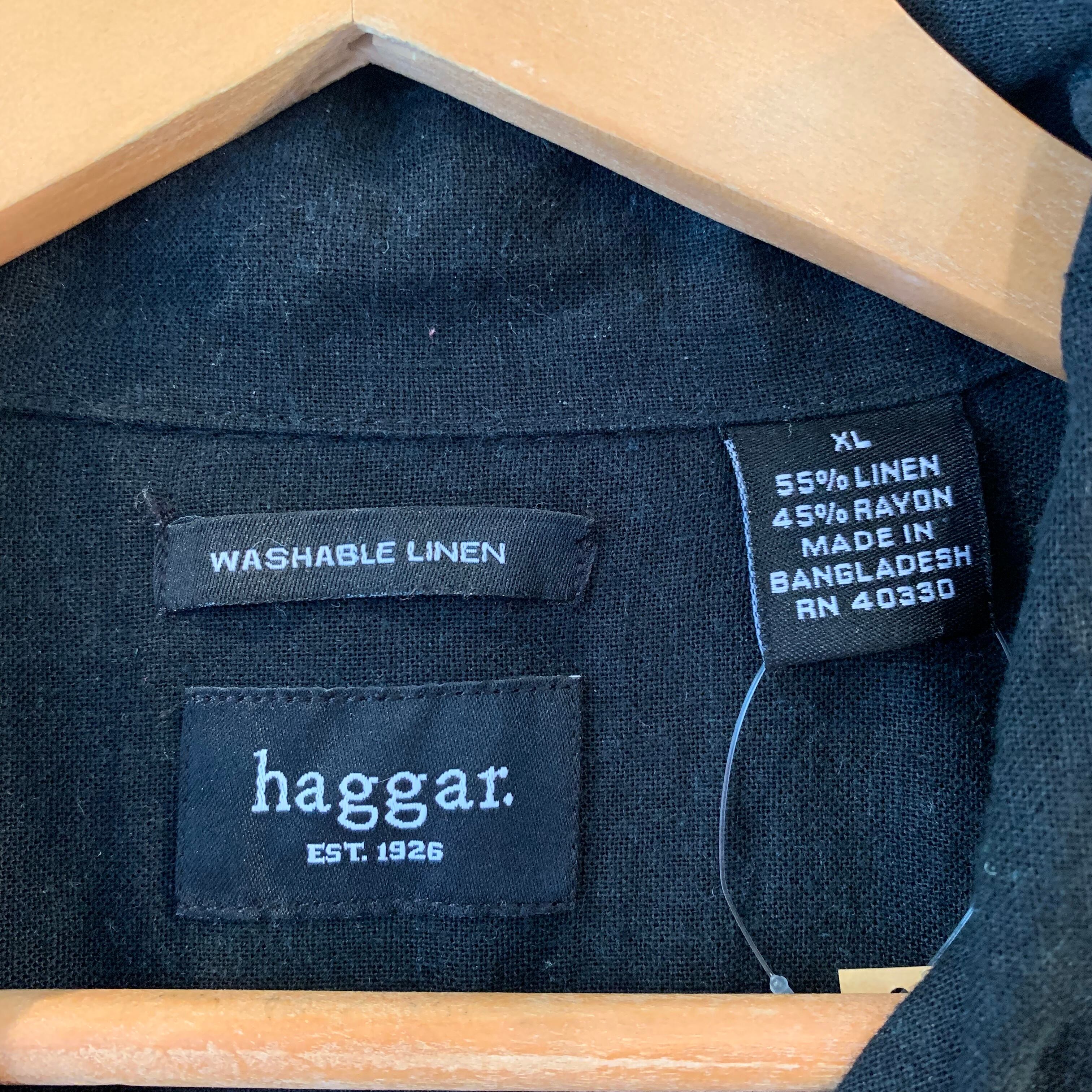 1990s 切替シャツ リネン レーヨン ウッドボタン ブラック×ベージュ XL