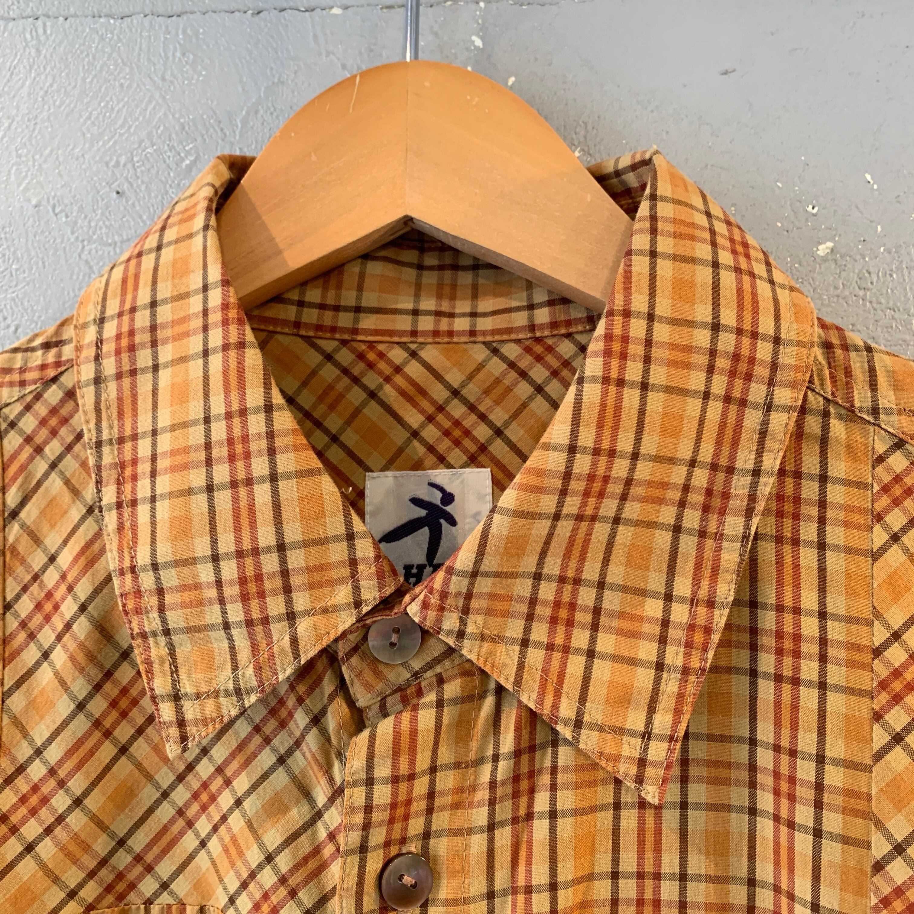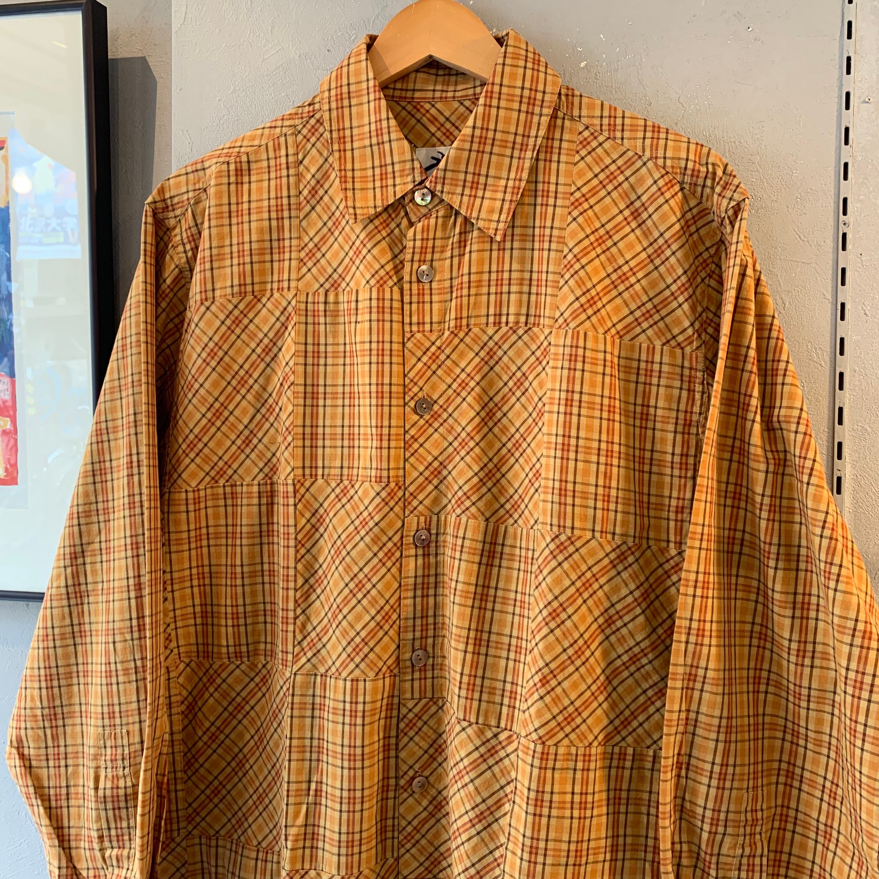 80s イッセイミヤケ ハイ スポーティングギア 切替 パッチワーク チェックシャツ コットン ベージュ XL程度