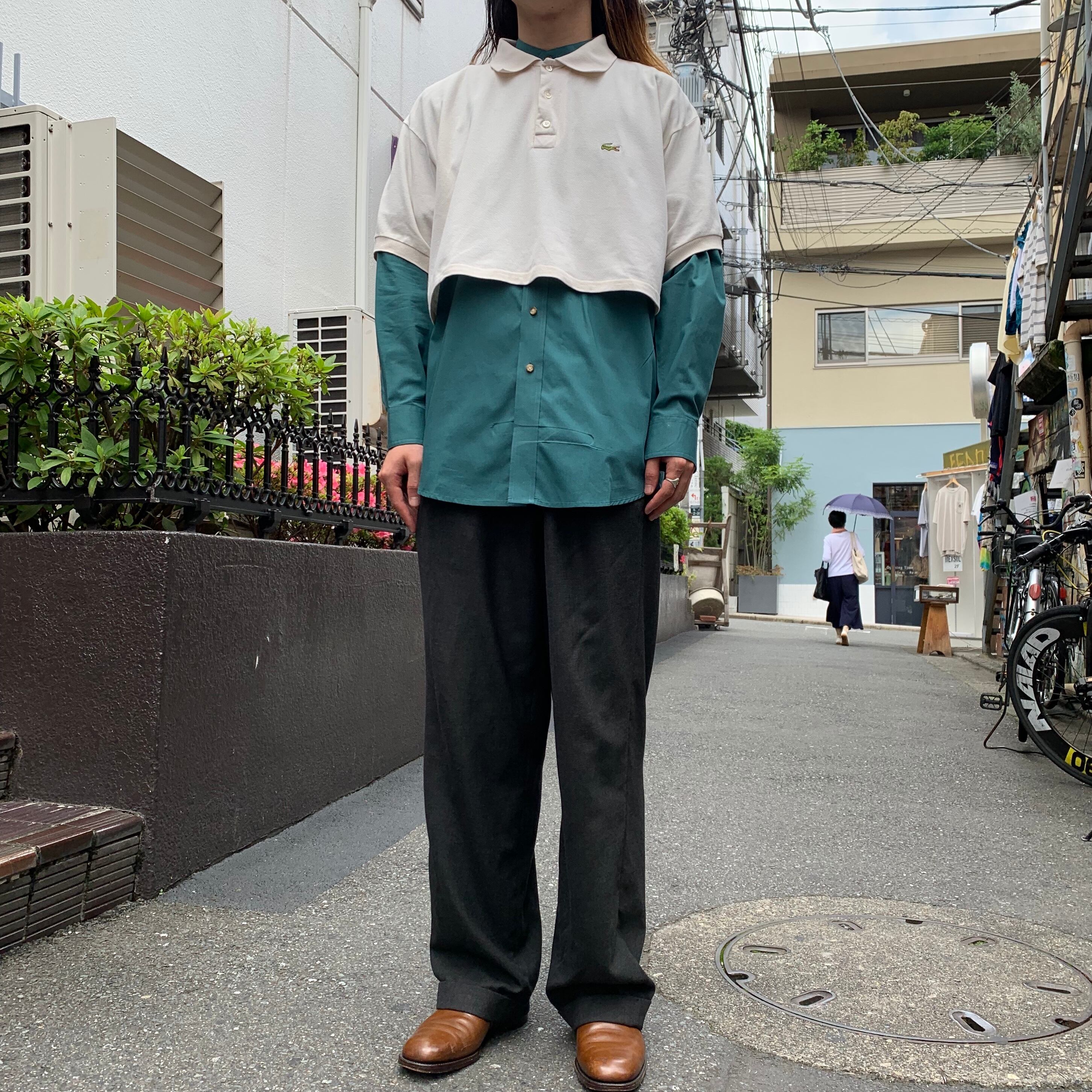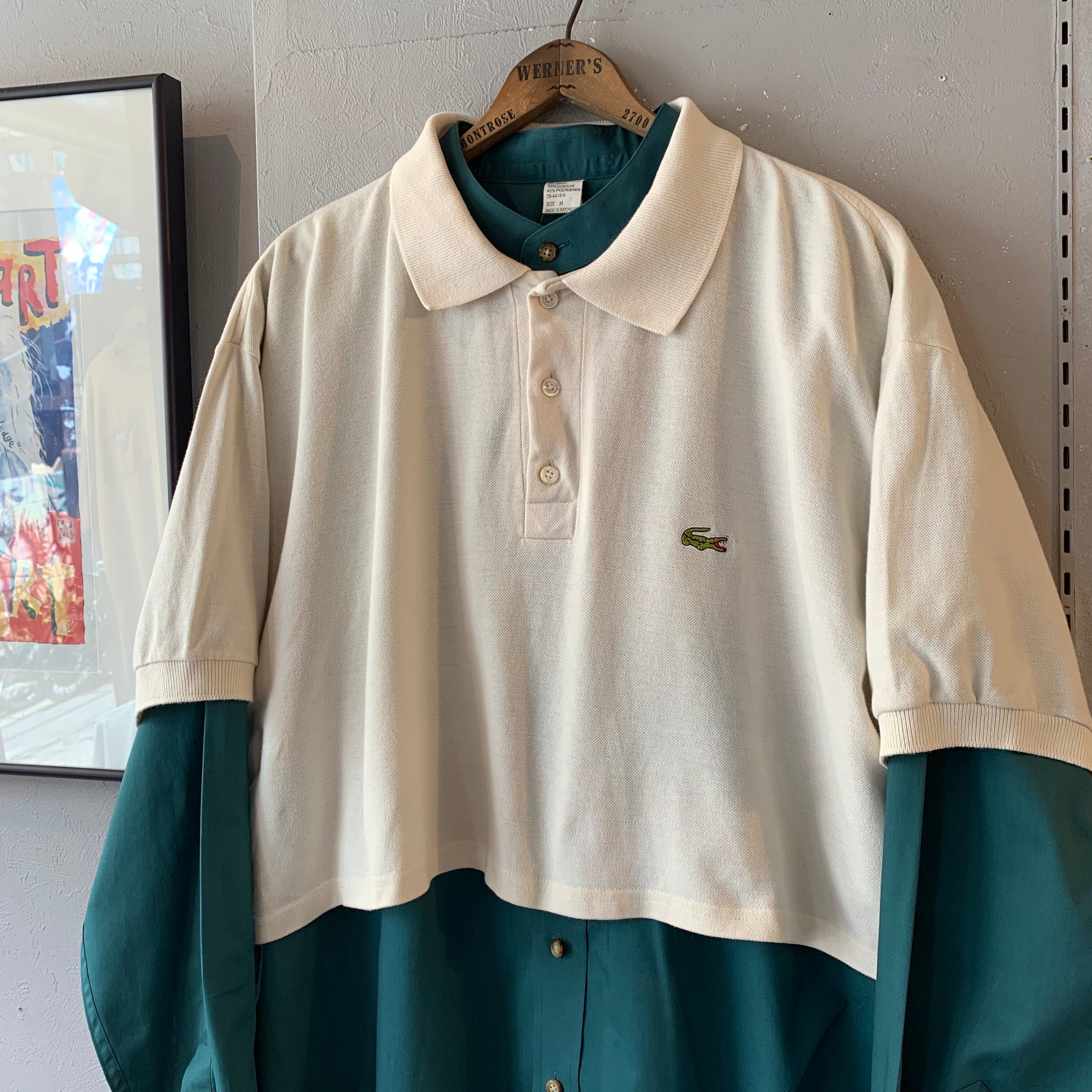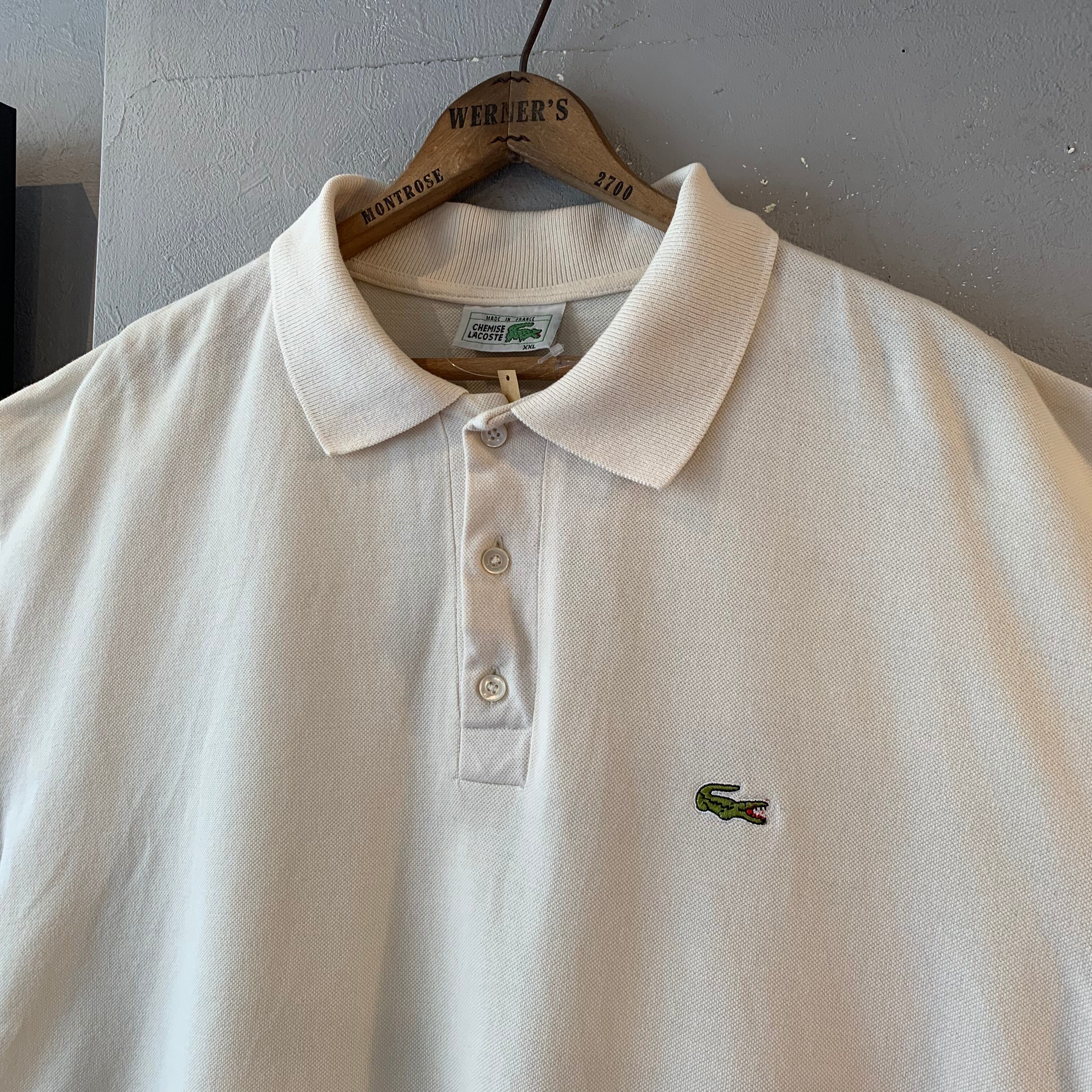 70s ラコステ 短丈デザインポロシャツ ワイドシルエット フランス製 アイボリー XXL