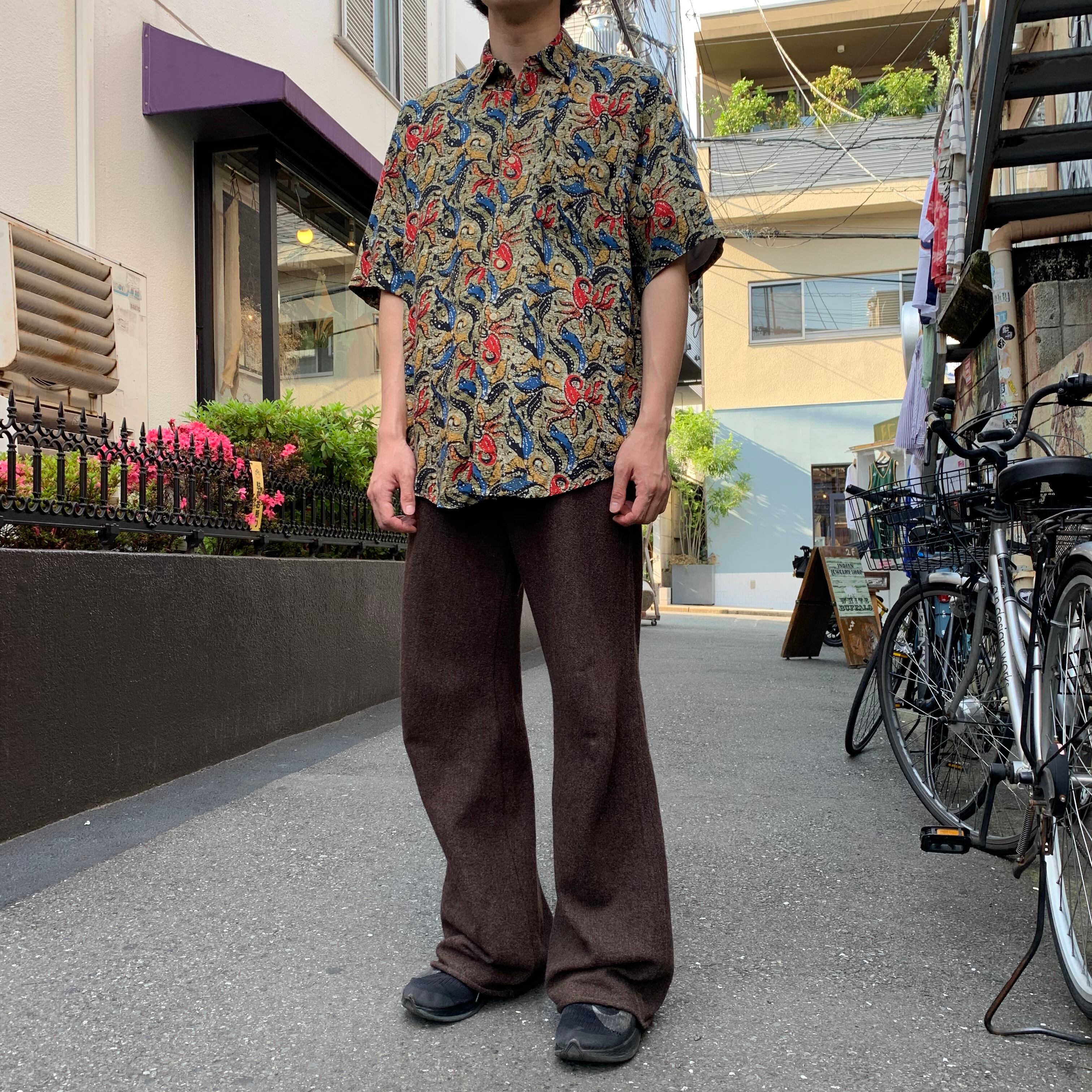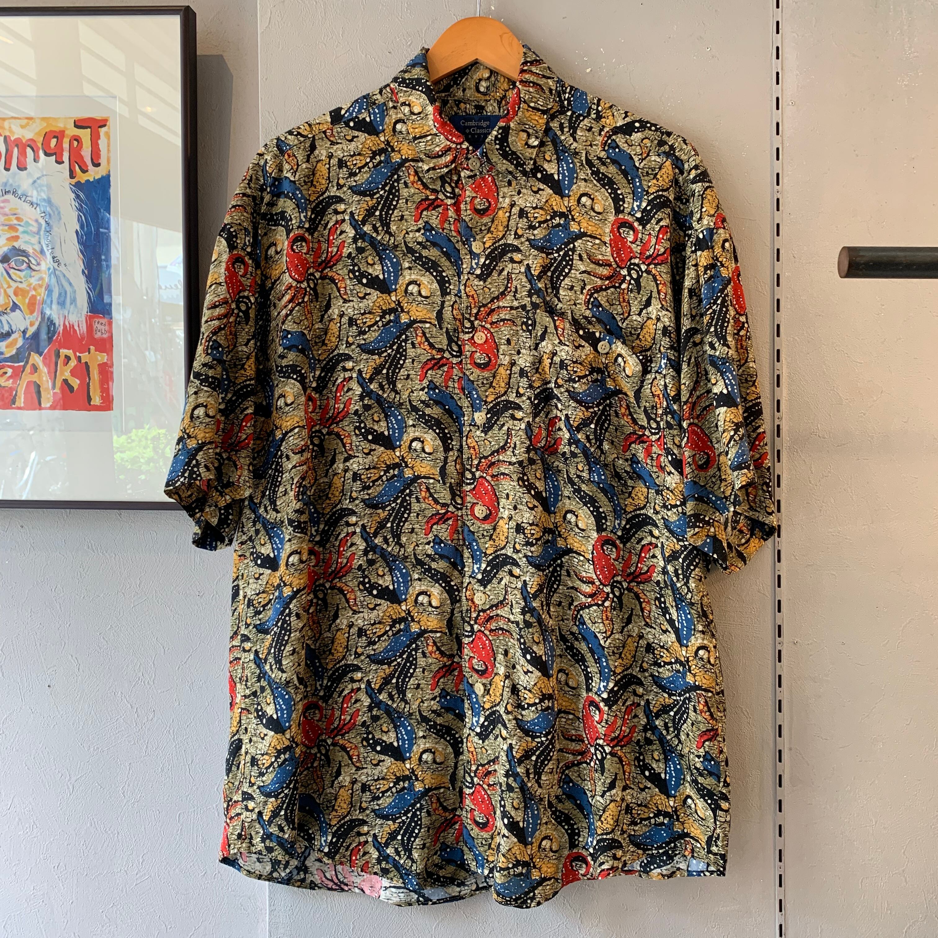 90s レーヨン総柄シャツ 半袖 ベージュベース M