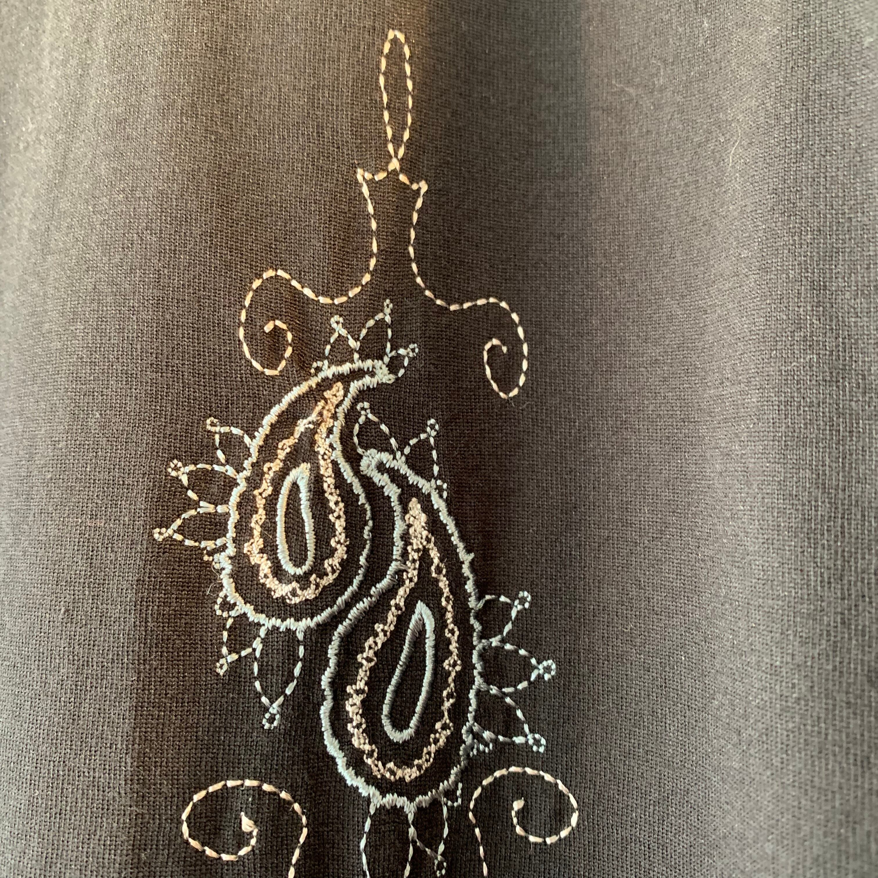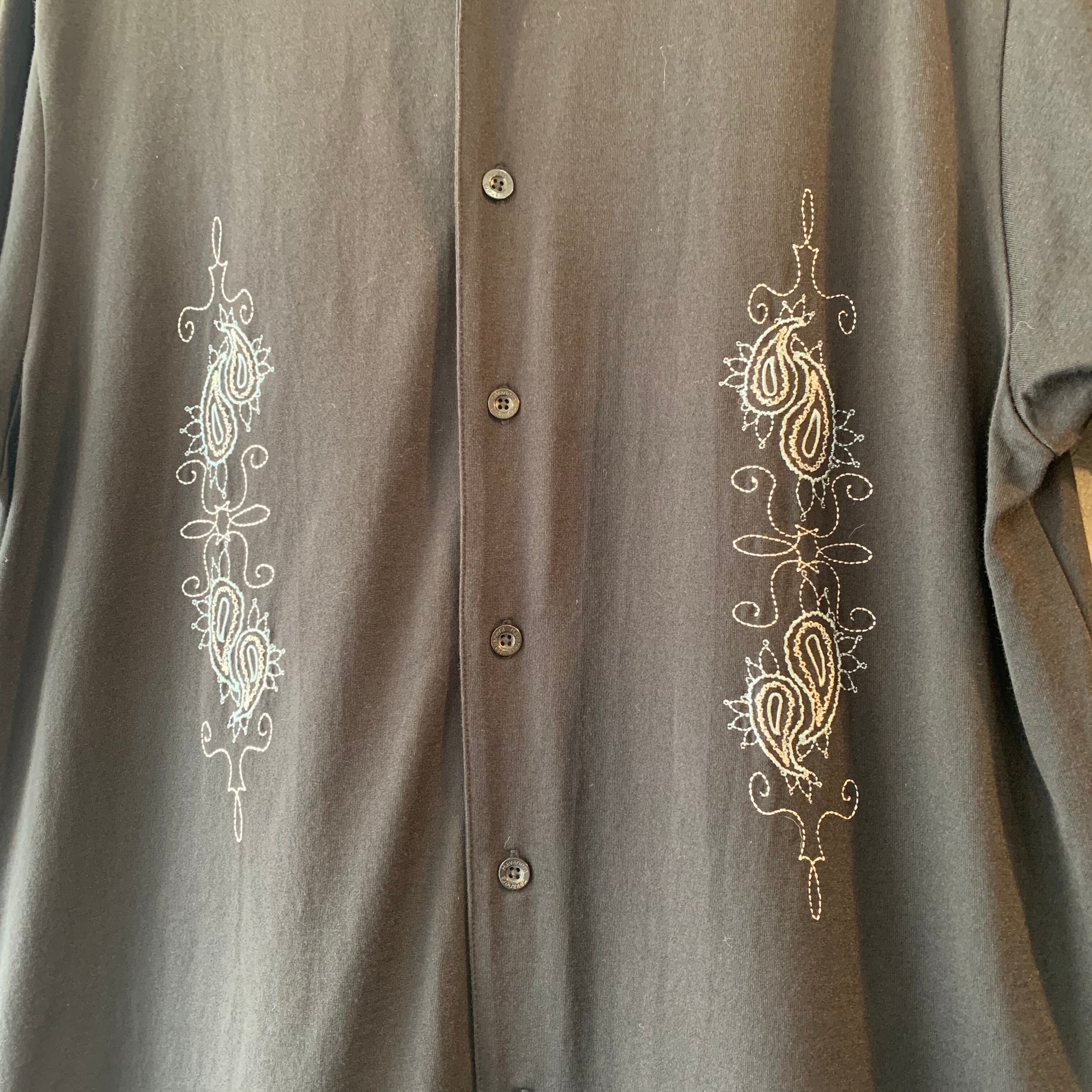 90s 刺繍シャツ コットン ナイロン 半袖 ブラック M