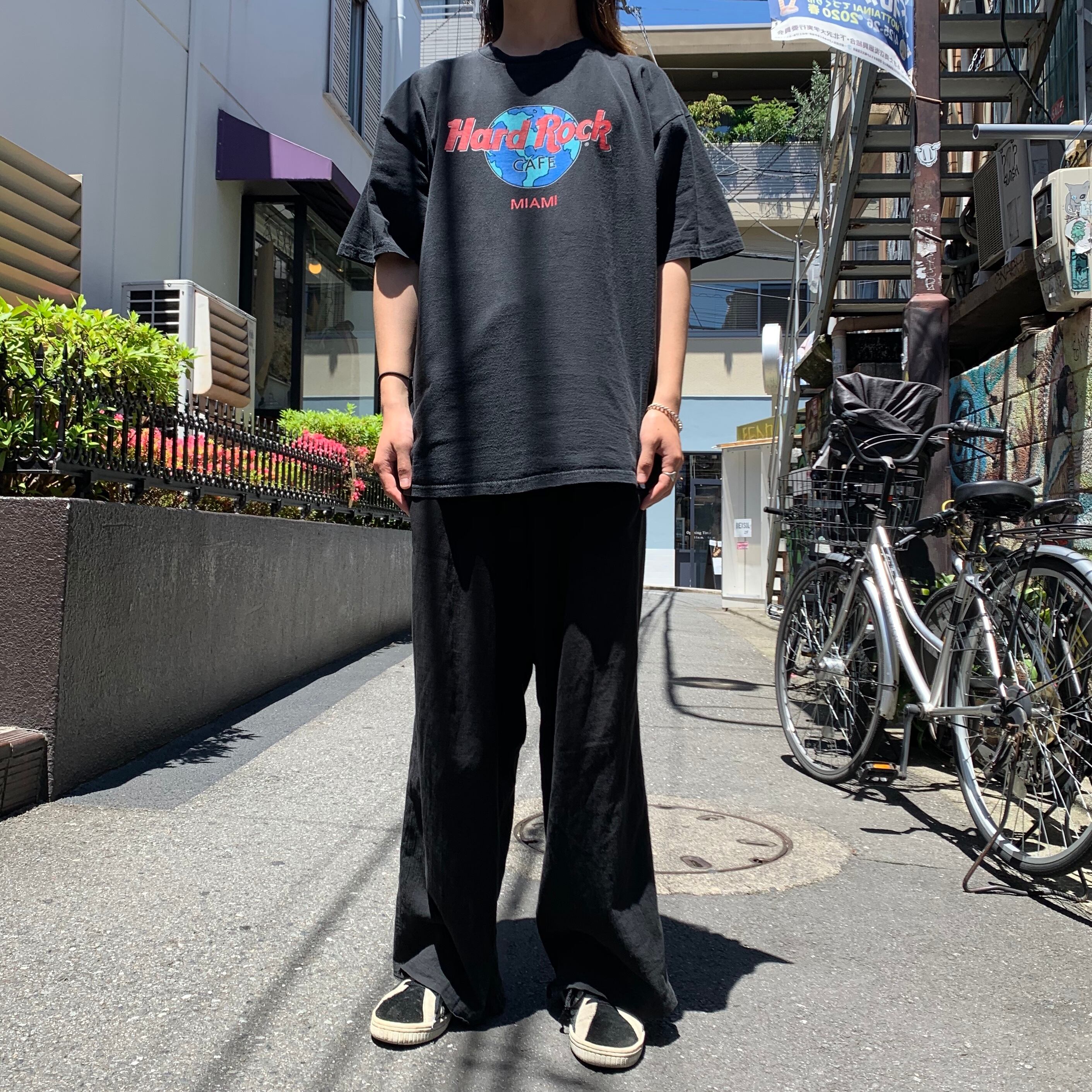 90s ハードロックカフェ ロゴプリントTシャツ マイアミ ブラック XL