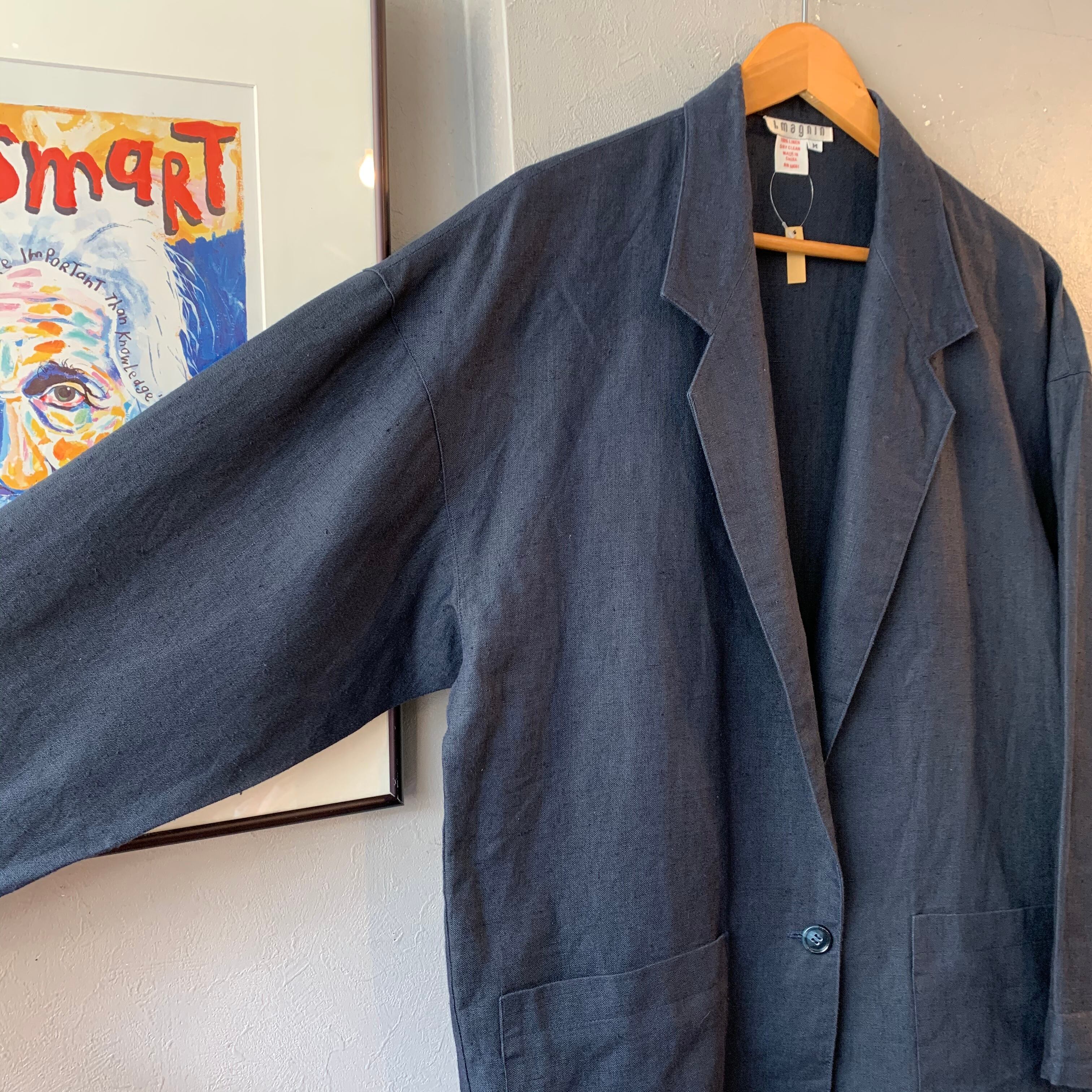 1990s リネンテーラードジャケット ダークネイビー ボックスシルエット