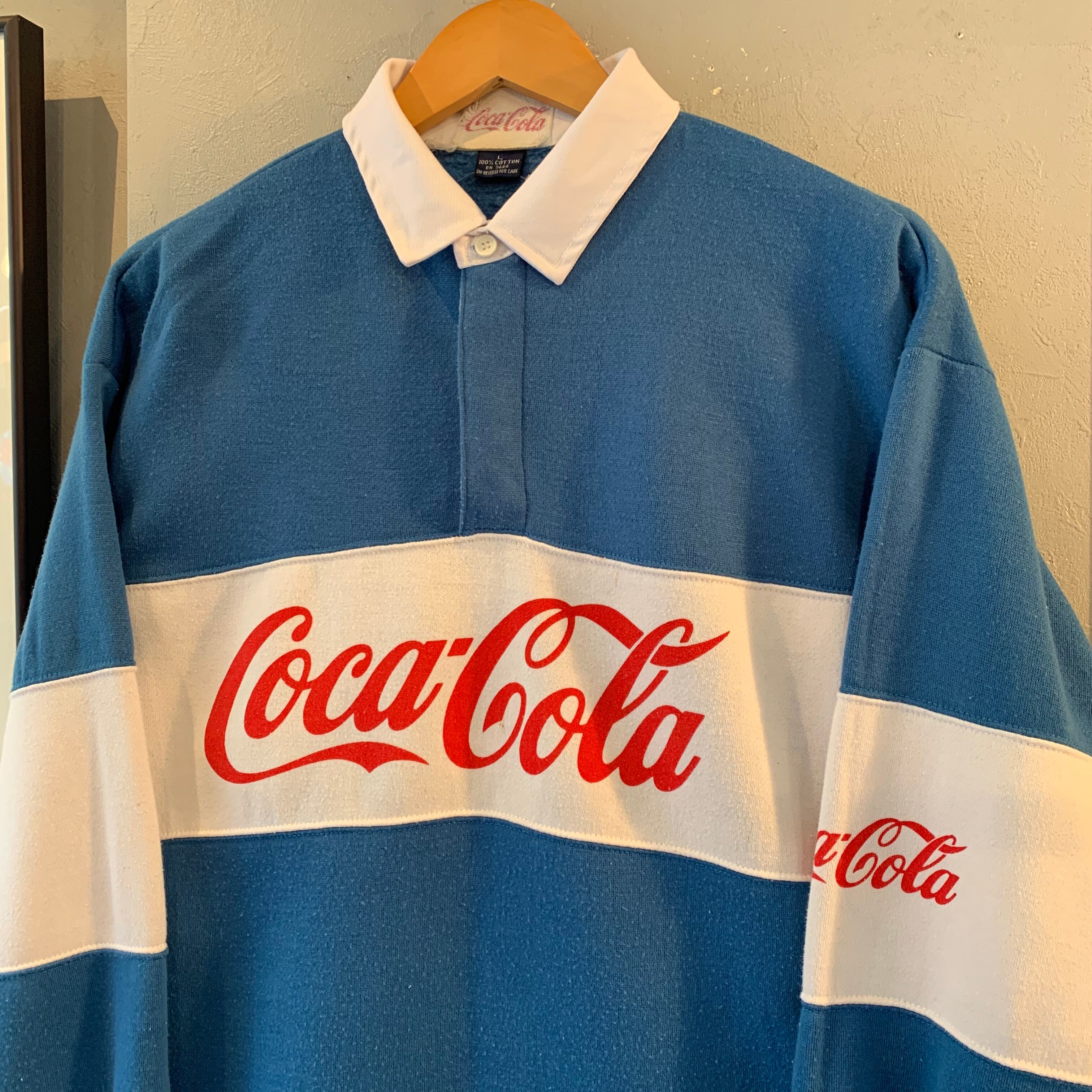 90s コカコーラ オフィシャル ラガーシャツ スエット生地 ライトブルー×ホワイト L