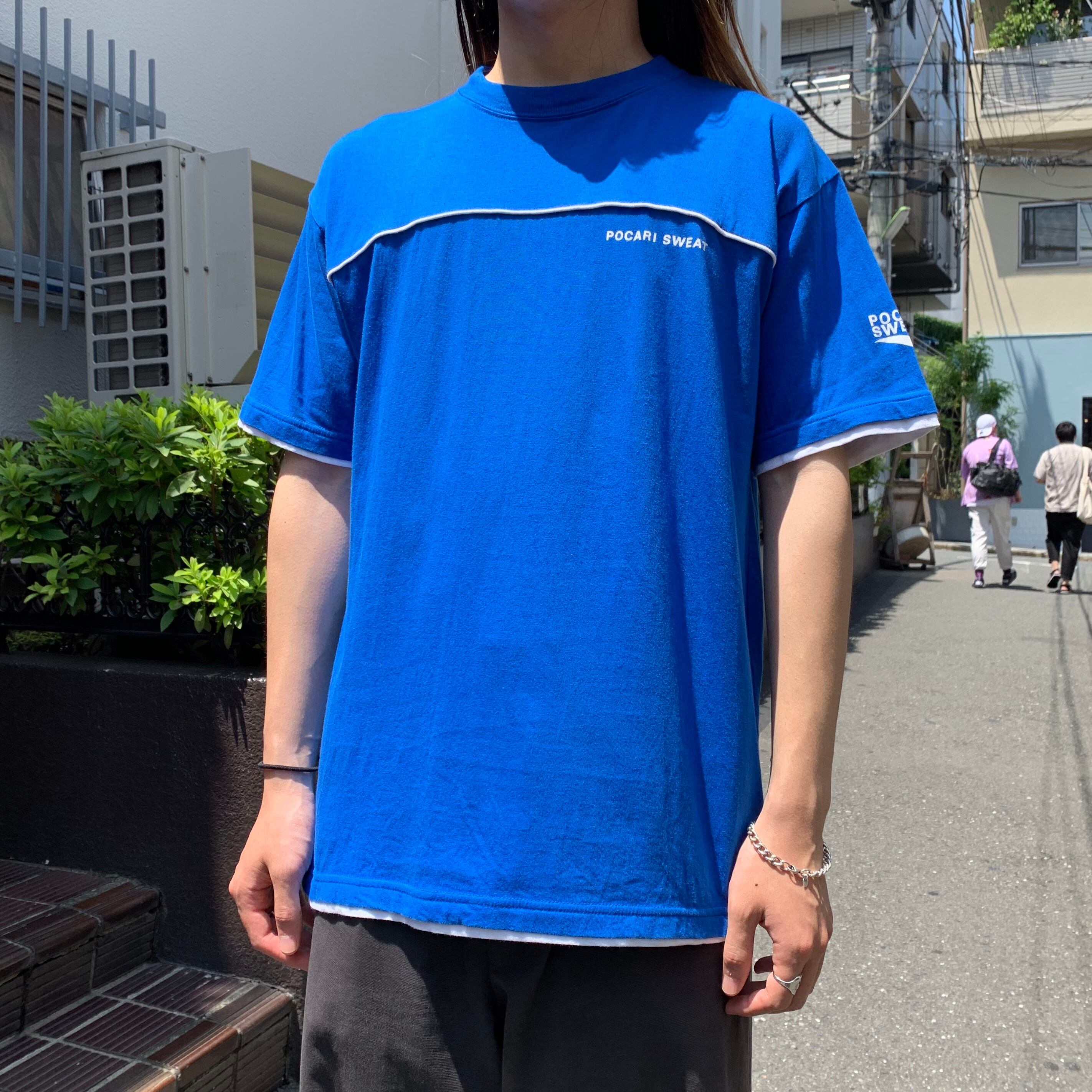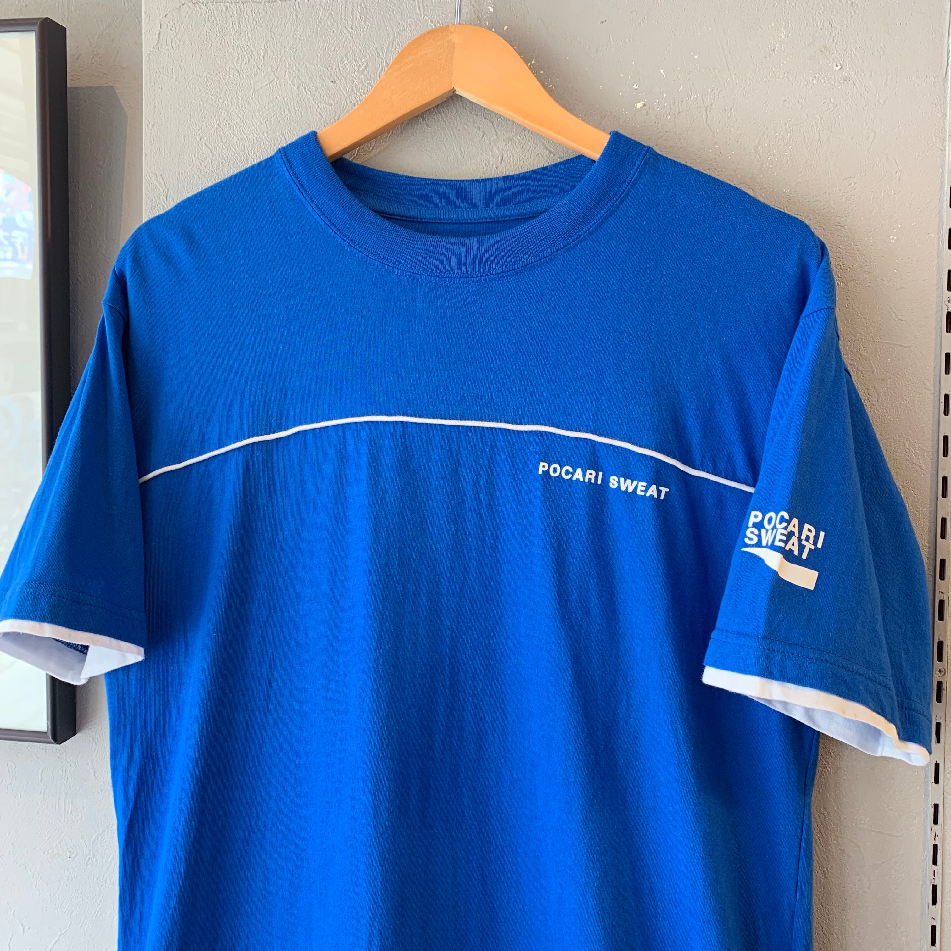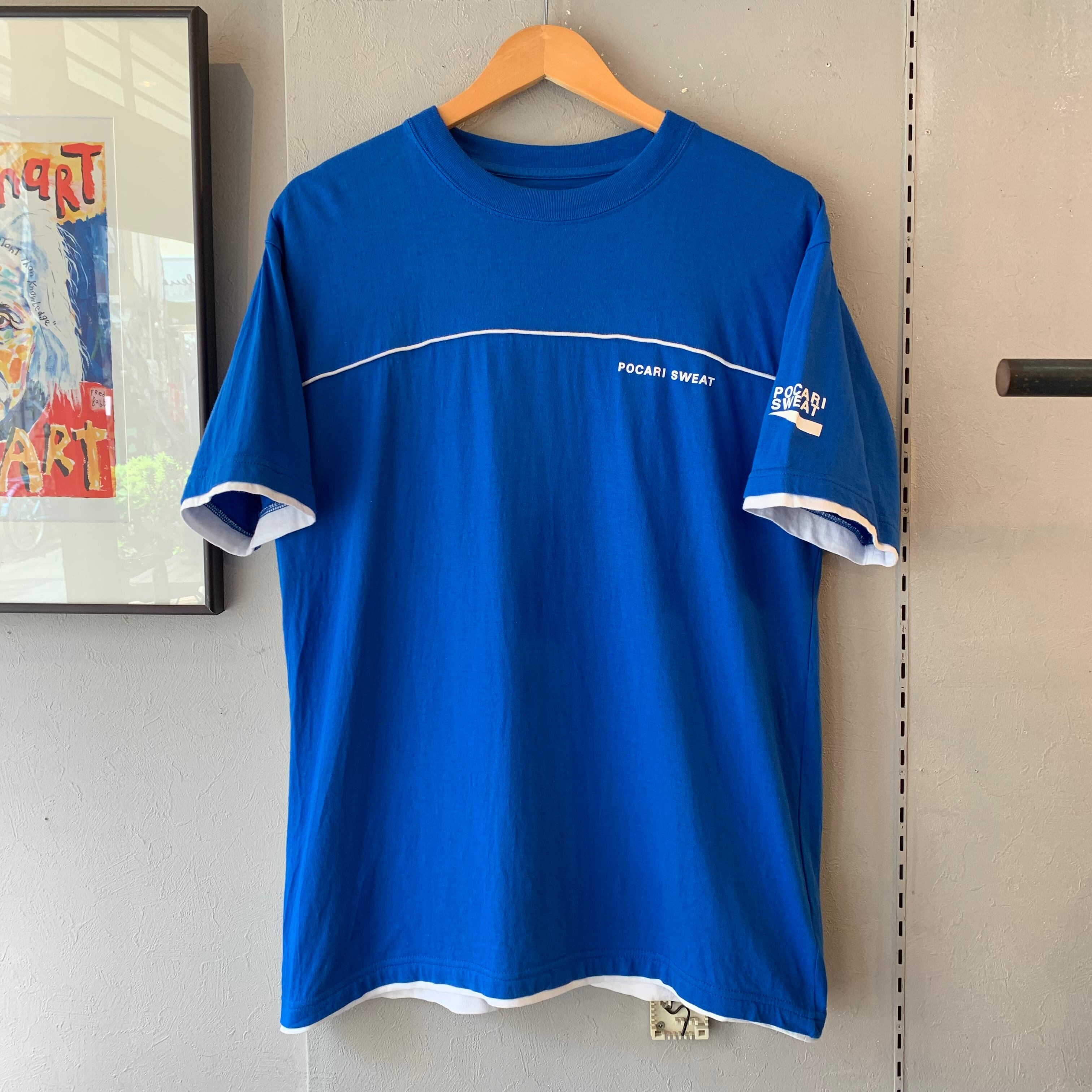 ポカリスエット ワンポイント Tシャツ ブルー×ホワイト L