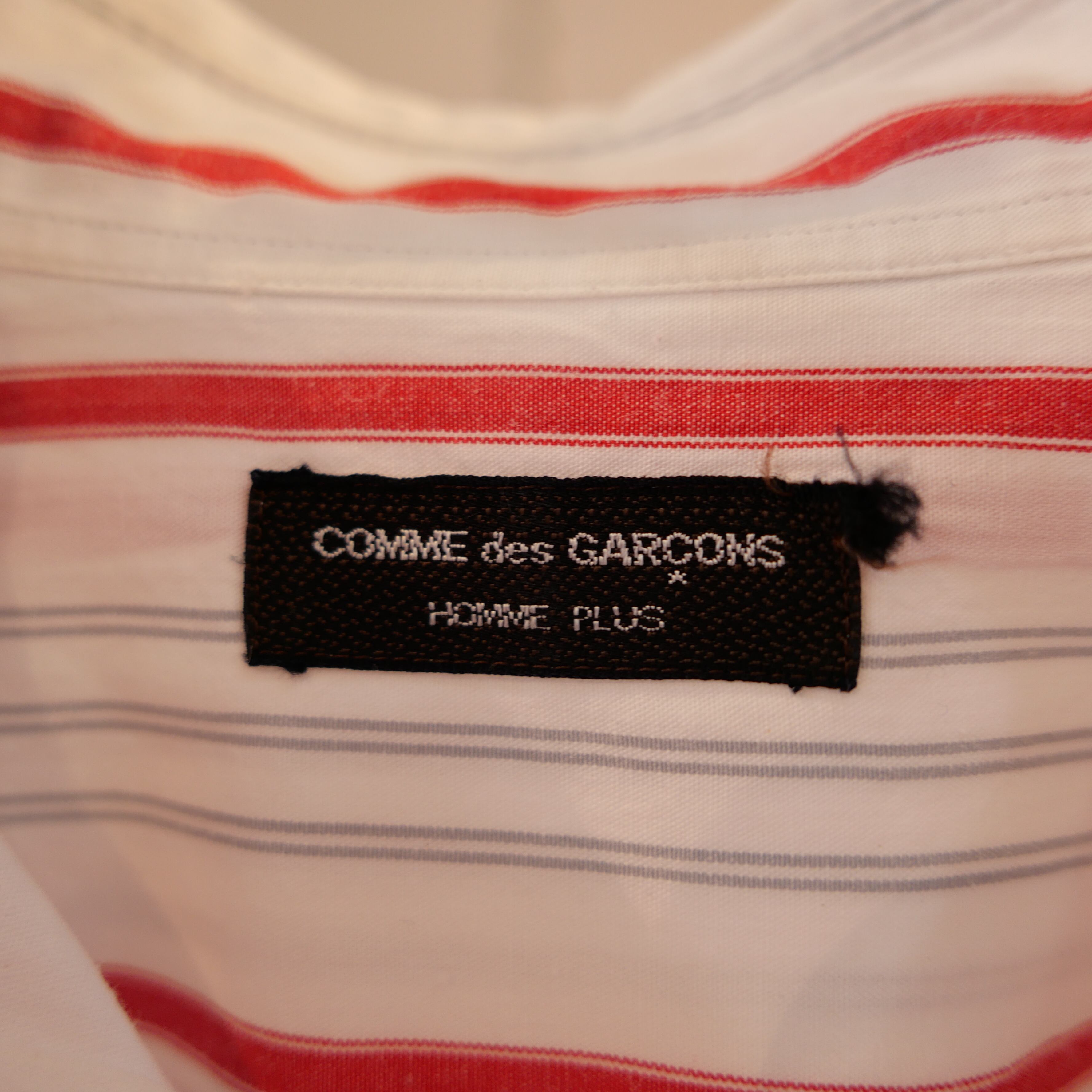 80s コムデギャルソン オムプリュス 切替ストライプシャツ ホワイト XL