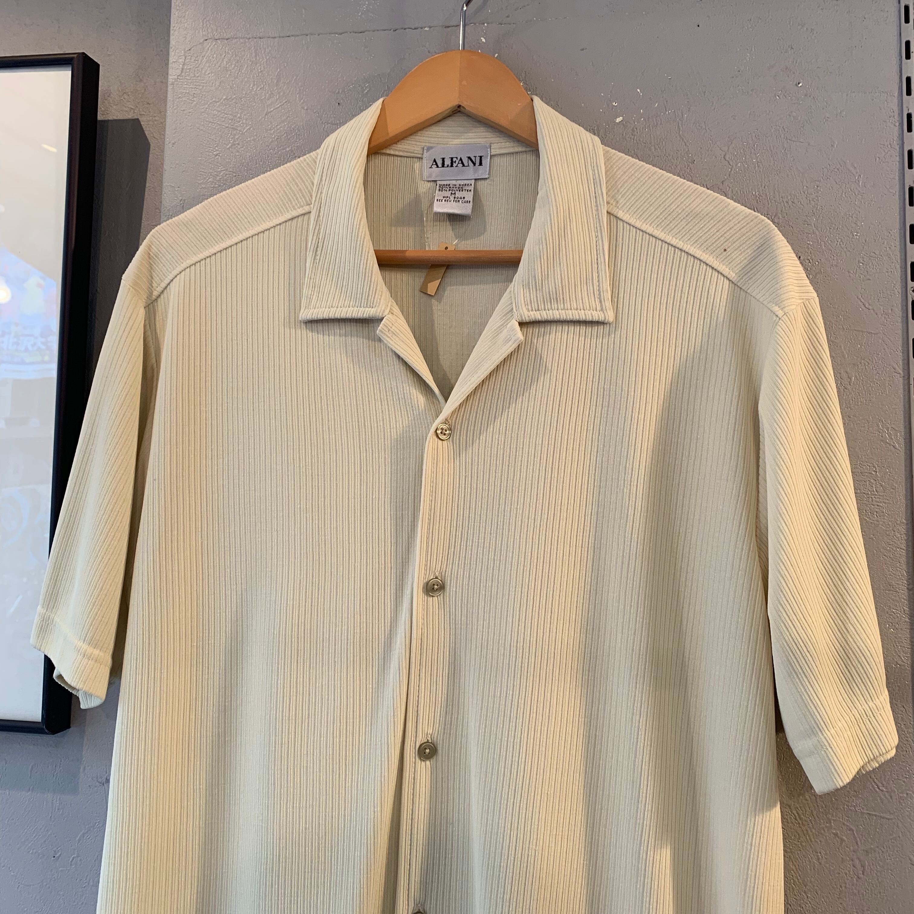 90s アルファニ レーヨン オープンカラーシャツ ニット生地 アイボリー M