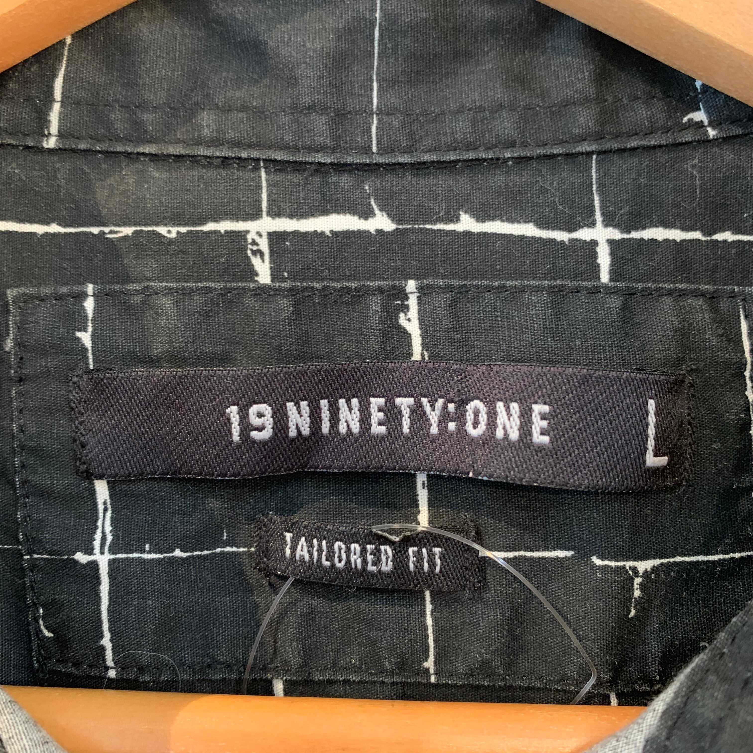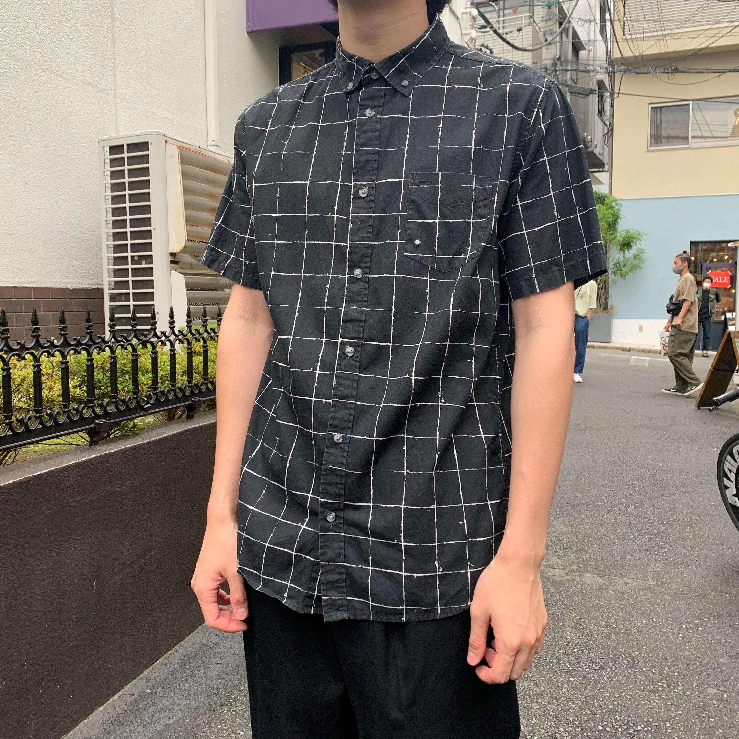 90s コットン チェックBDシャツ 手書き風 ブラック L