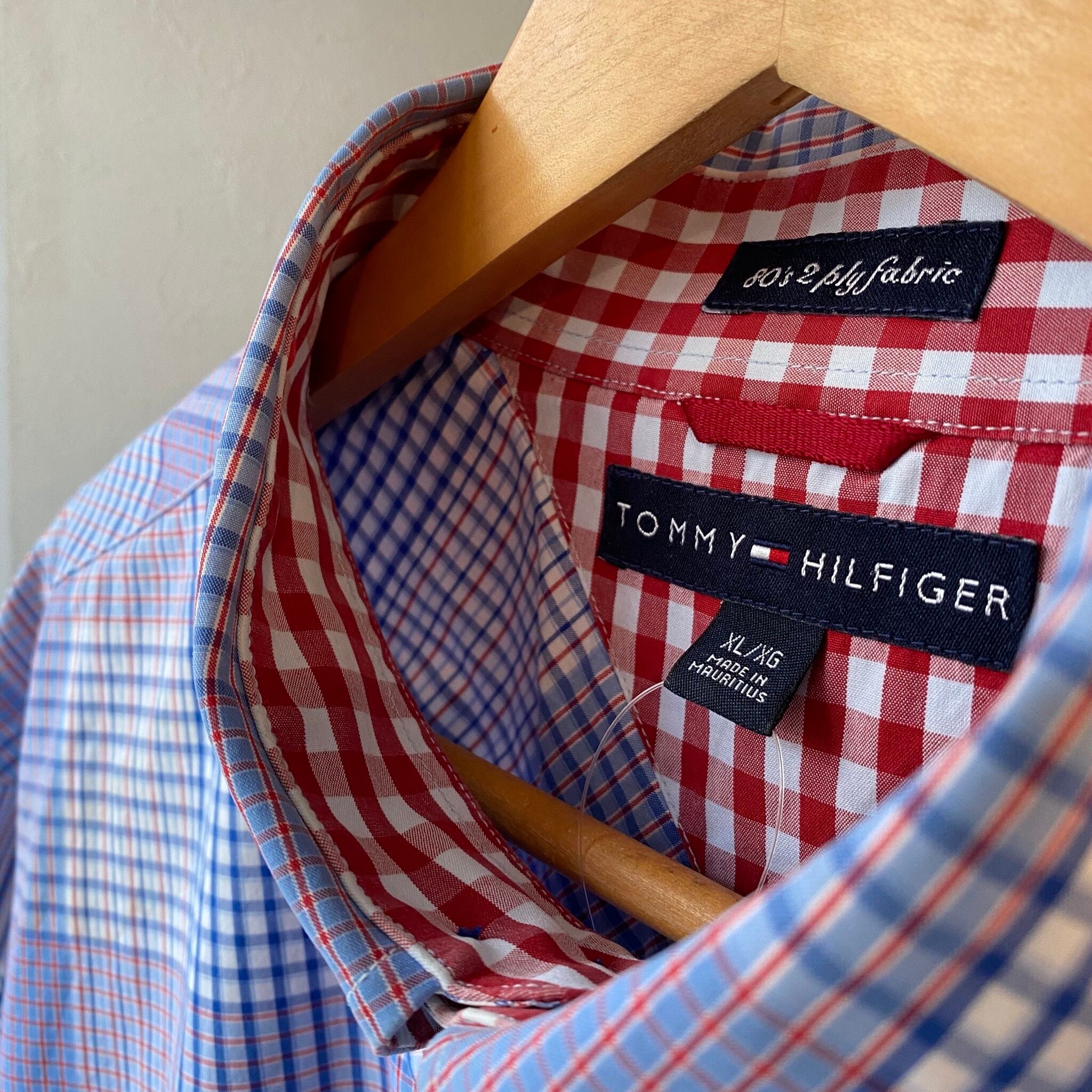 80s TOMMY HILFIGER コットン 半袖 チェック シャツ XL