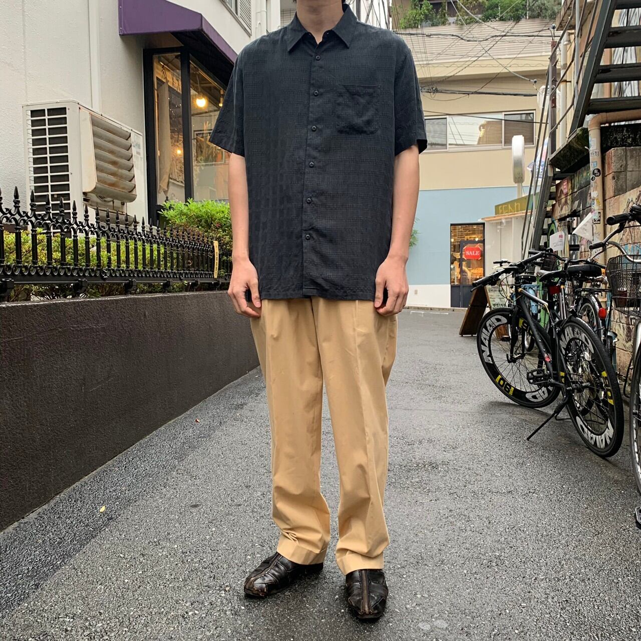 90s モダール レーヨン ポリエステル 薄チェック 半袖シャツ ブラック L