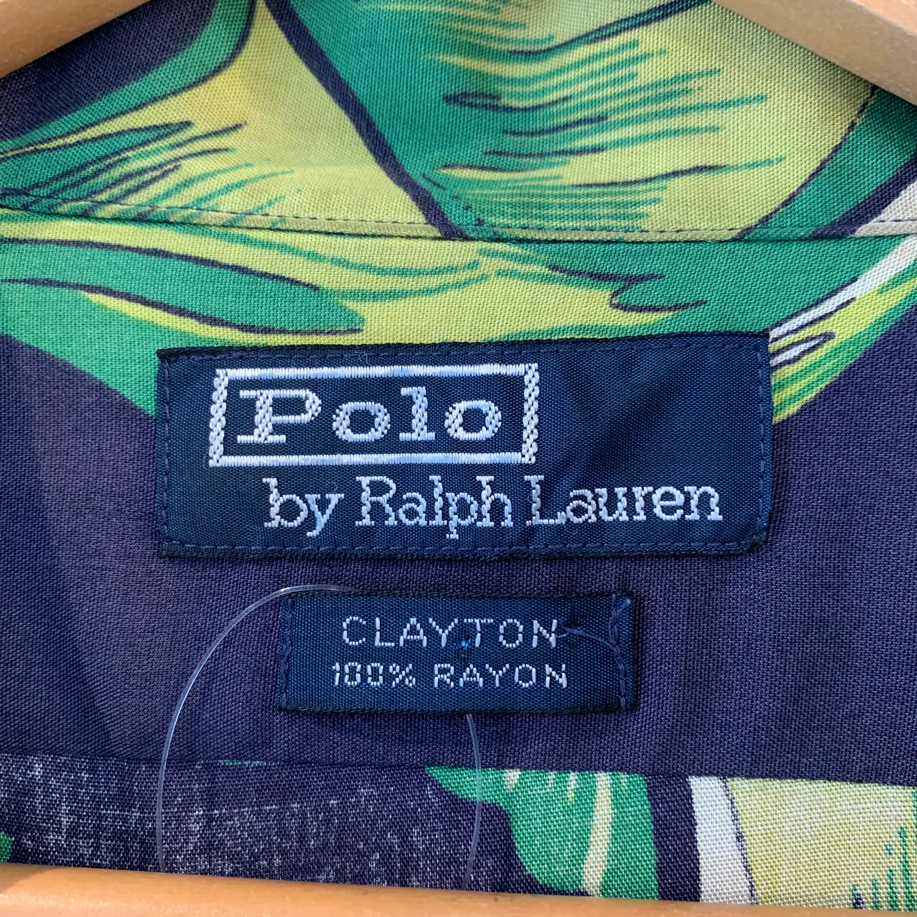 90s ラルフローレン レーヨン アロハシャツ CLAYTON ネイビー XL