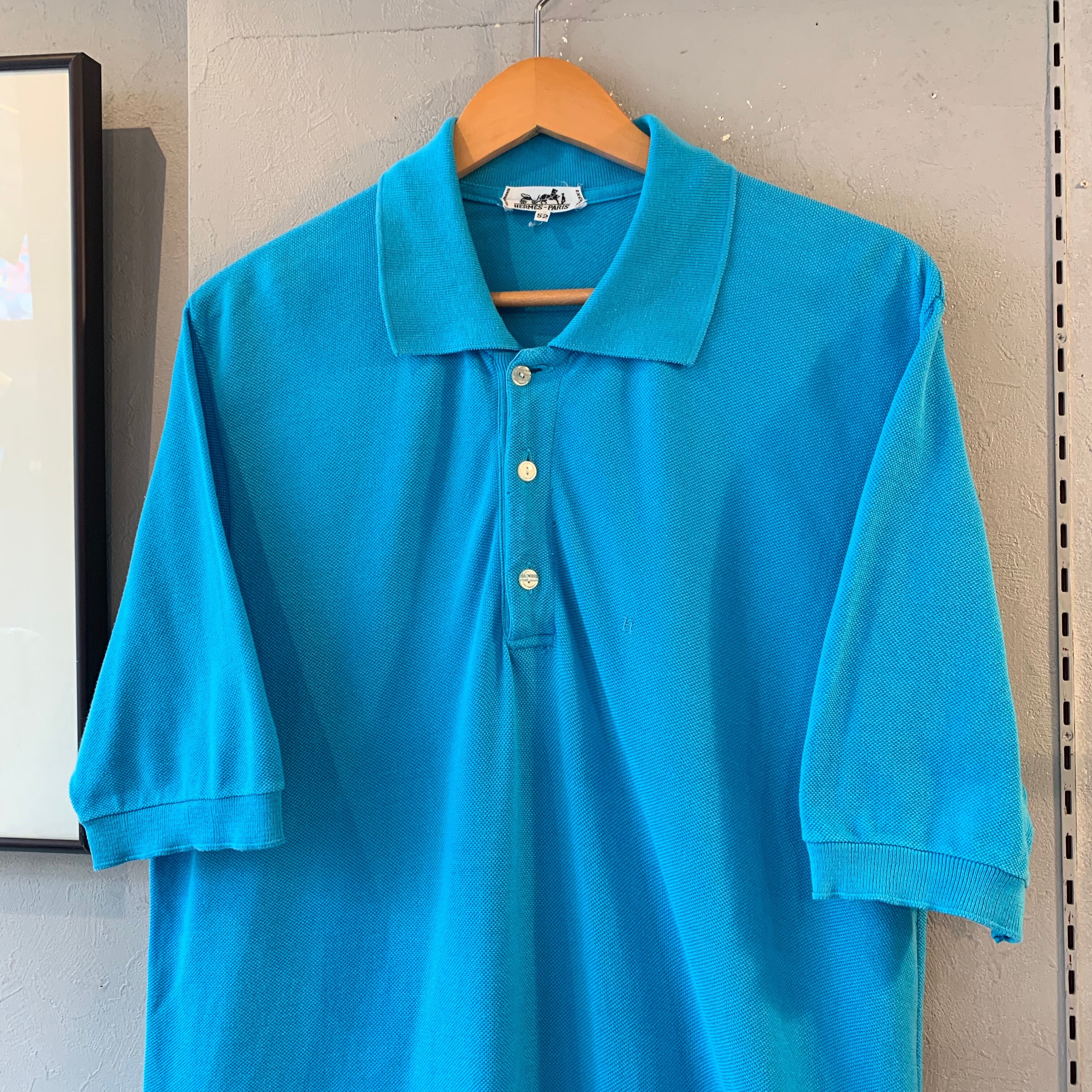 80s エルメス ポロシャツ 半袖 フランス製 ターコイズブルー XL