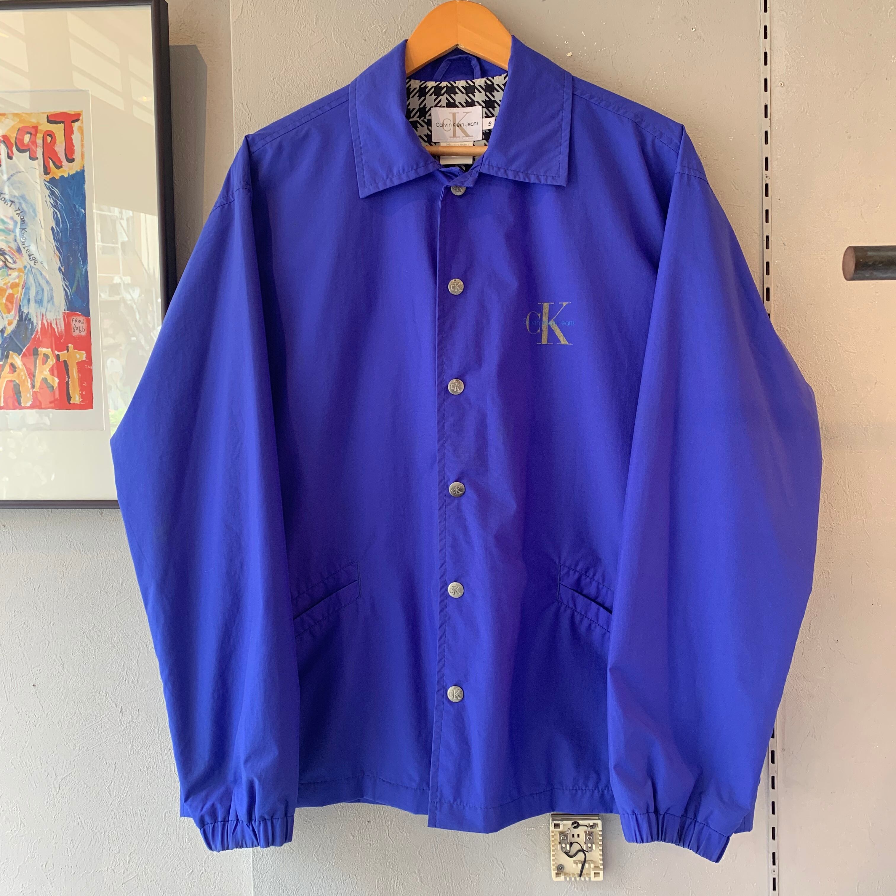 90s カルバン・クライン ナイロンコーチジャケット バックプリント ロイヤルブルー S(L程度)