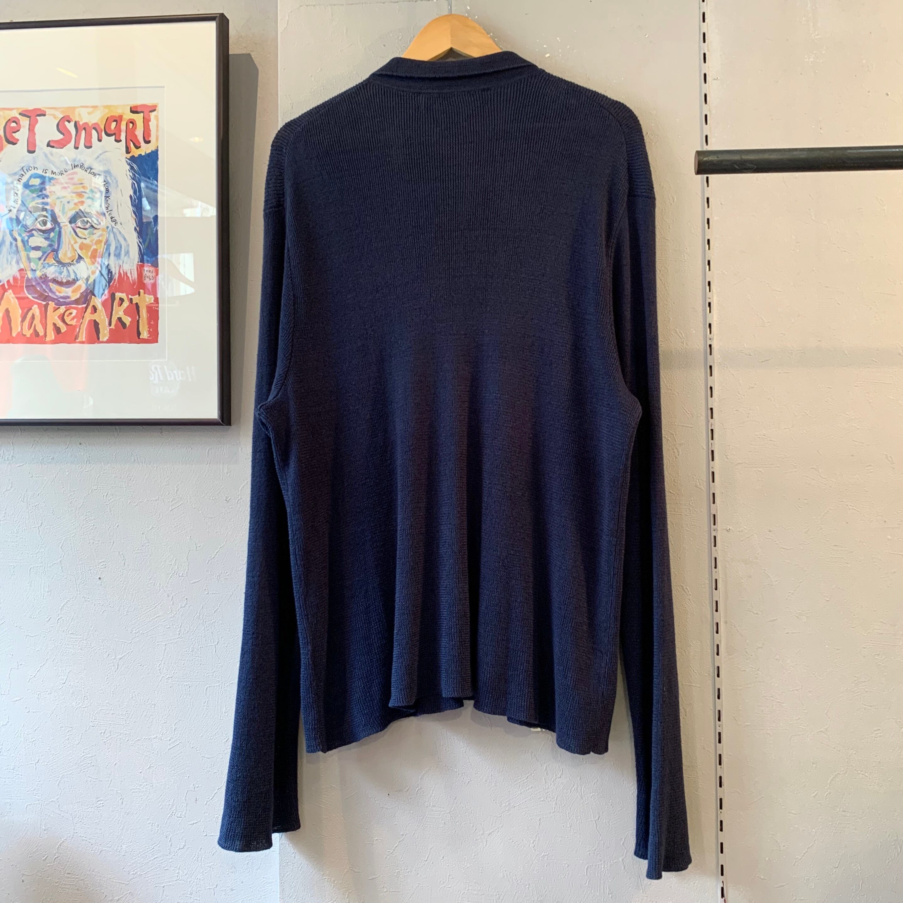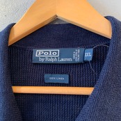 90s ラルフローレン リネンサマーニット ポロシャツ ネイビーブルー インディゴ染め XXL