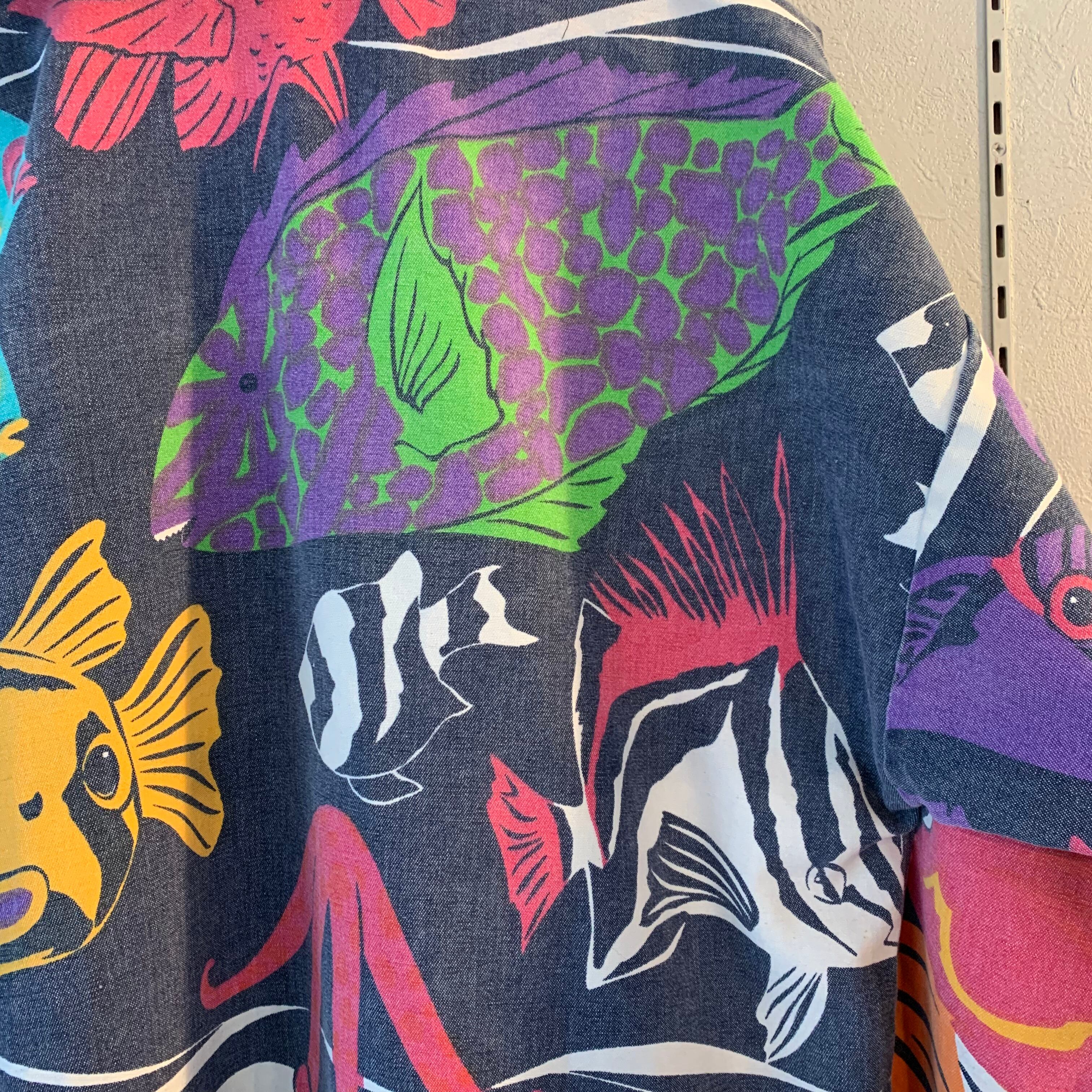90s ミシガンラグ 熱帯魚柄 コットンパーカー ポケット付き L程度
