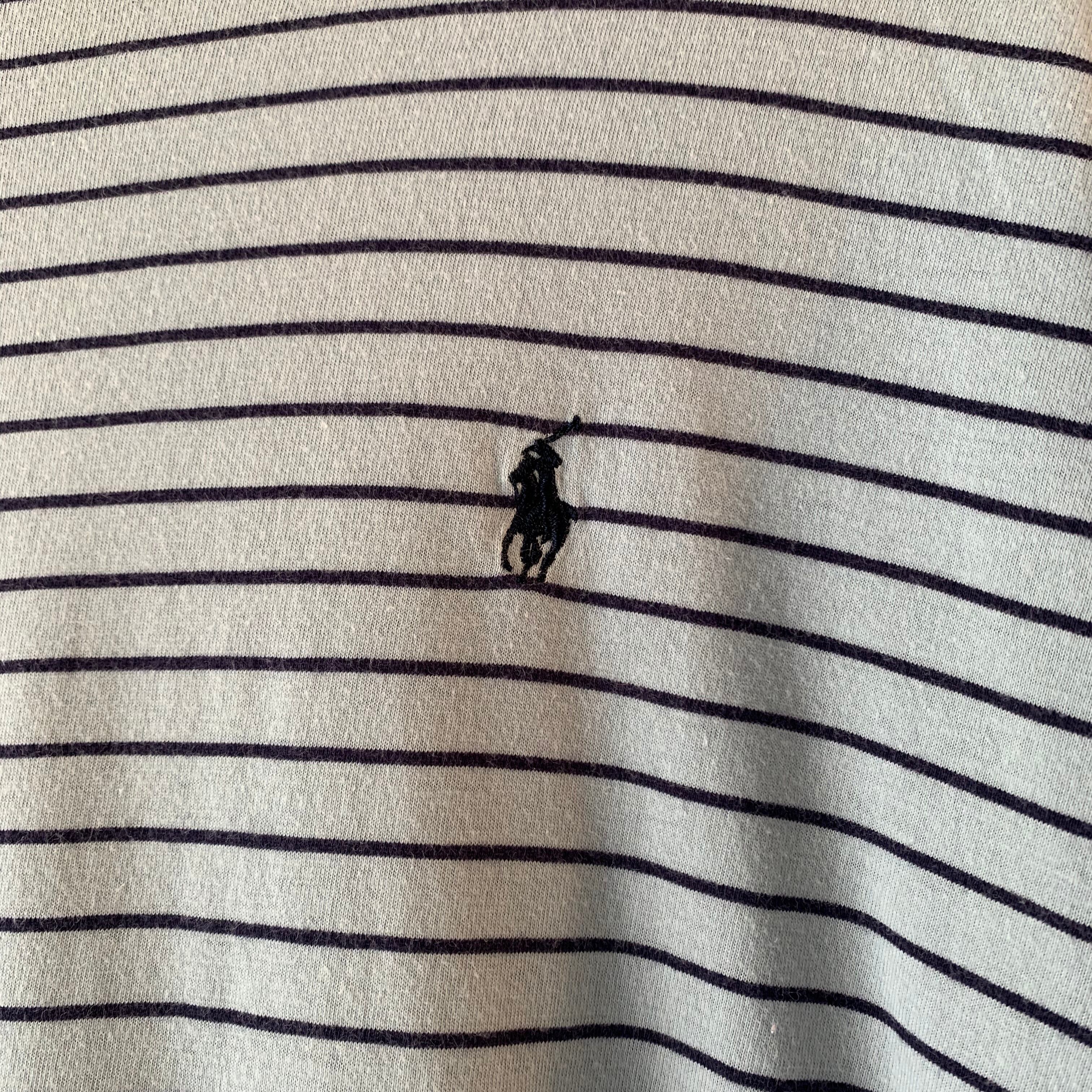 ラルフローレン ワンポイント ボーダーロンT スカイブルー×ネイビー L