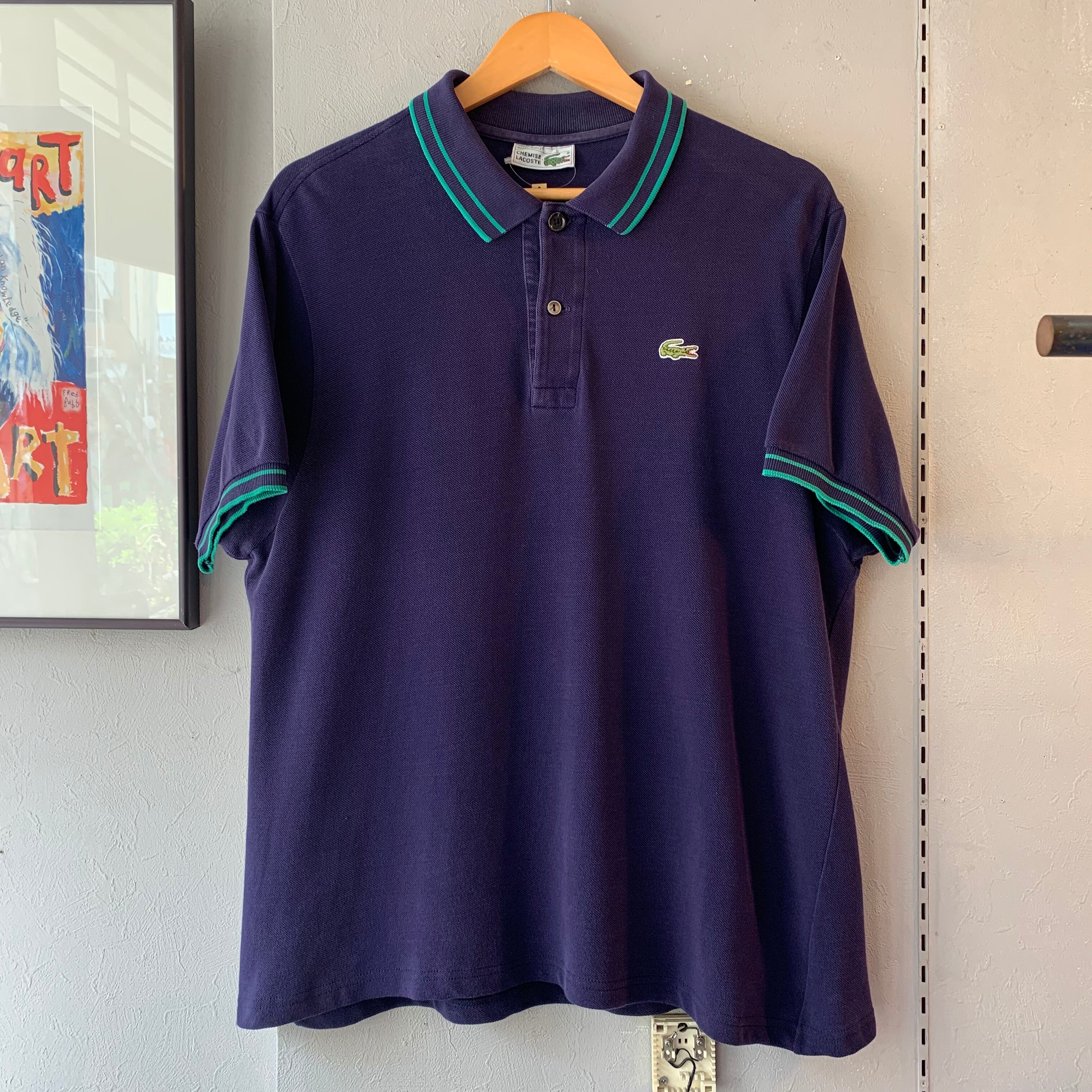 70s〜80s初期 ラコステ ライン入り ポロシャツ ネイビー×グリーン サイズ6 XL程度