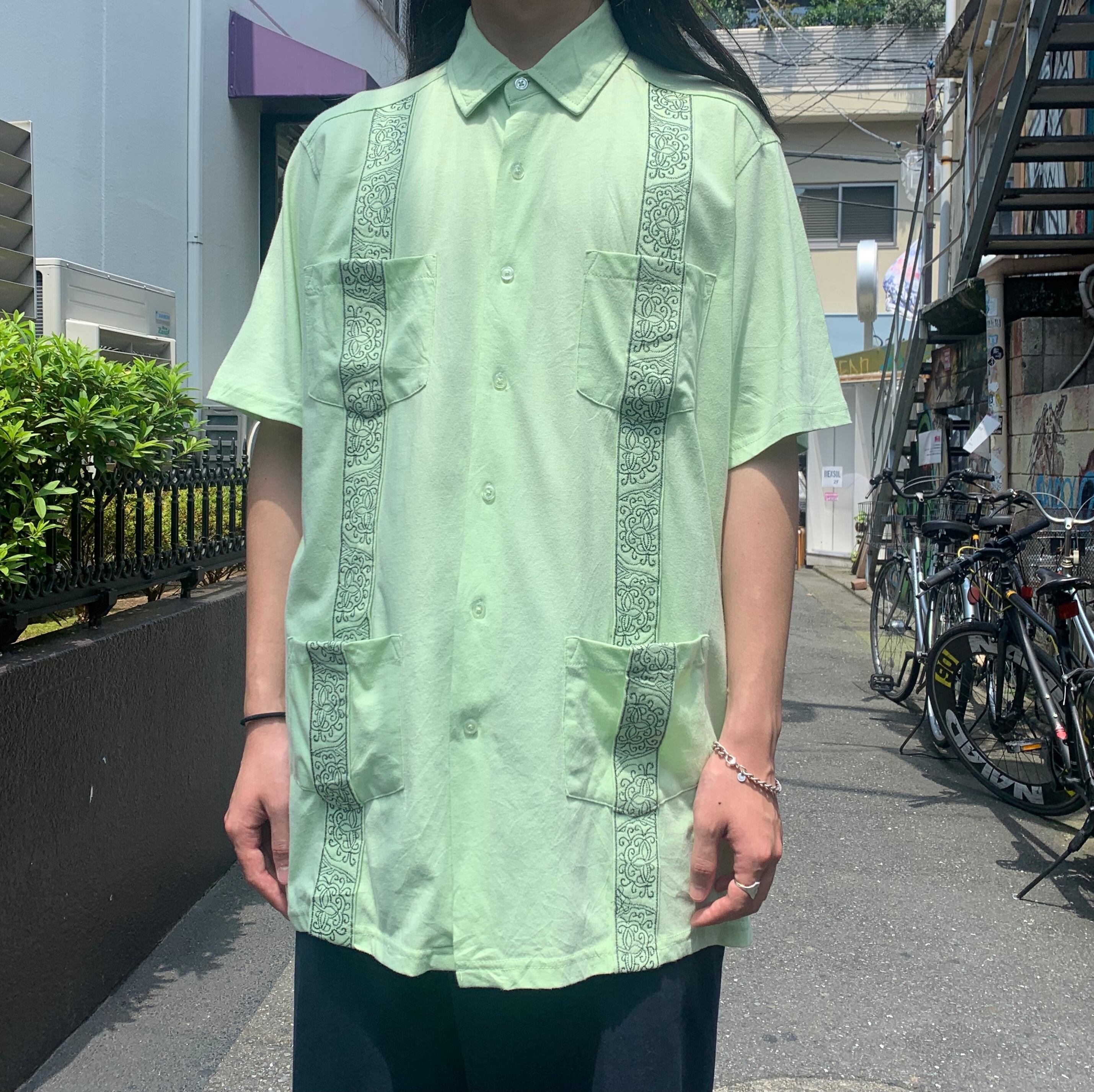 90s キューバシャツ Tシャツ生地 ペールグリーン L程度