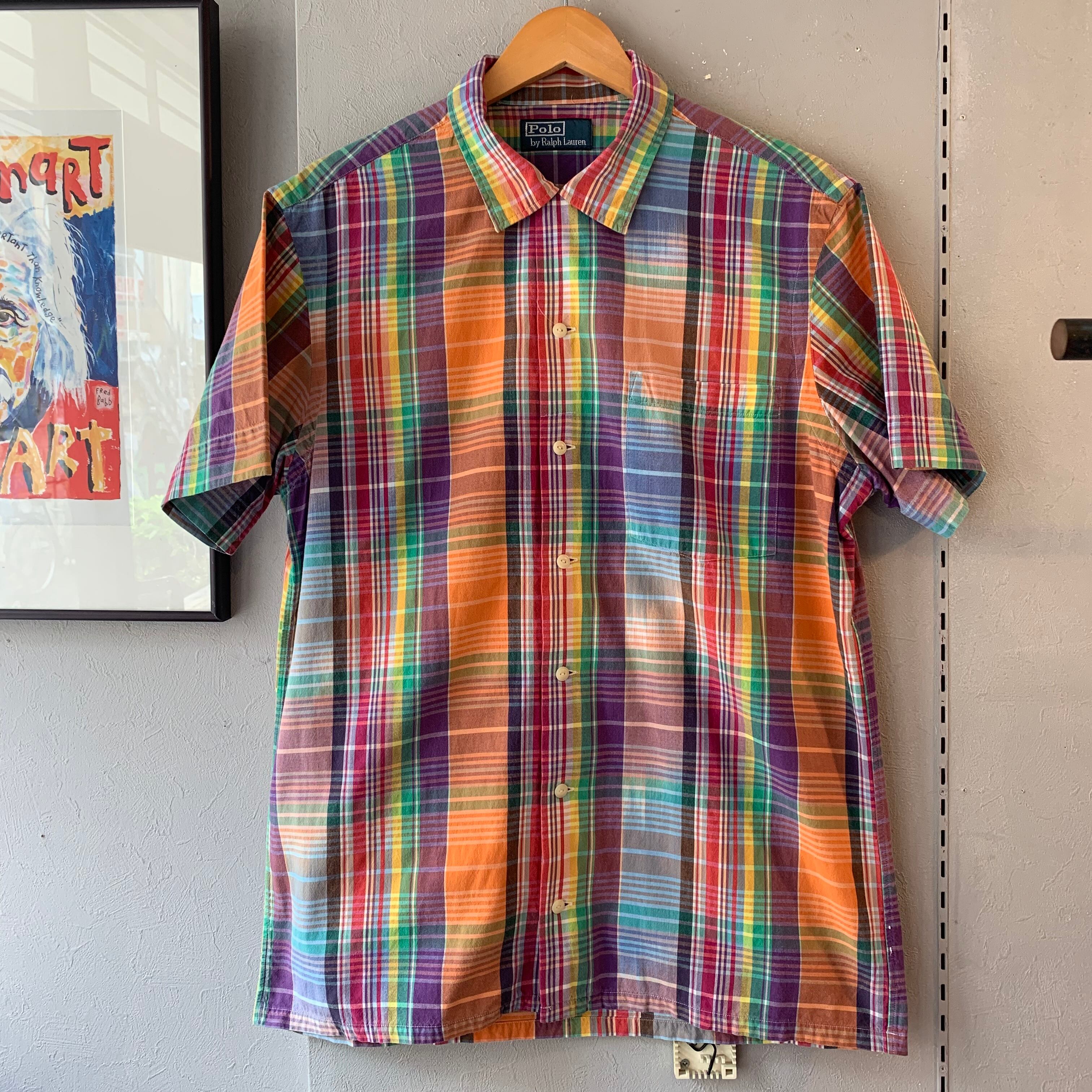 90s ラルフローレン マドラスチェック コットン ループカラーシャツ L程度