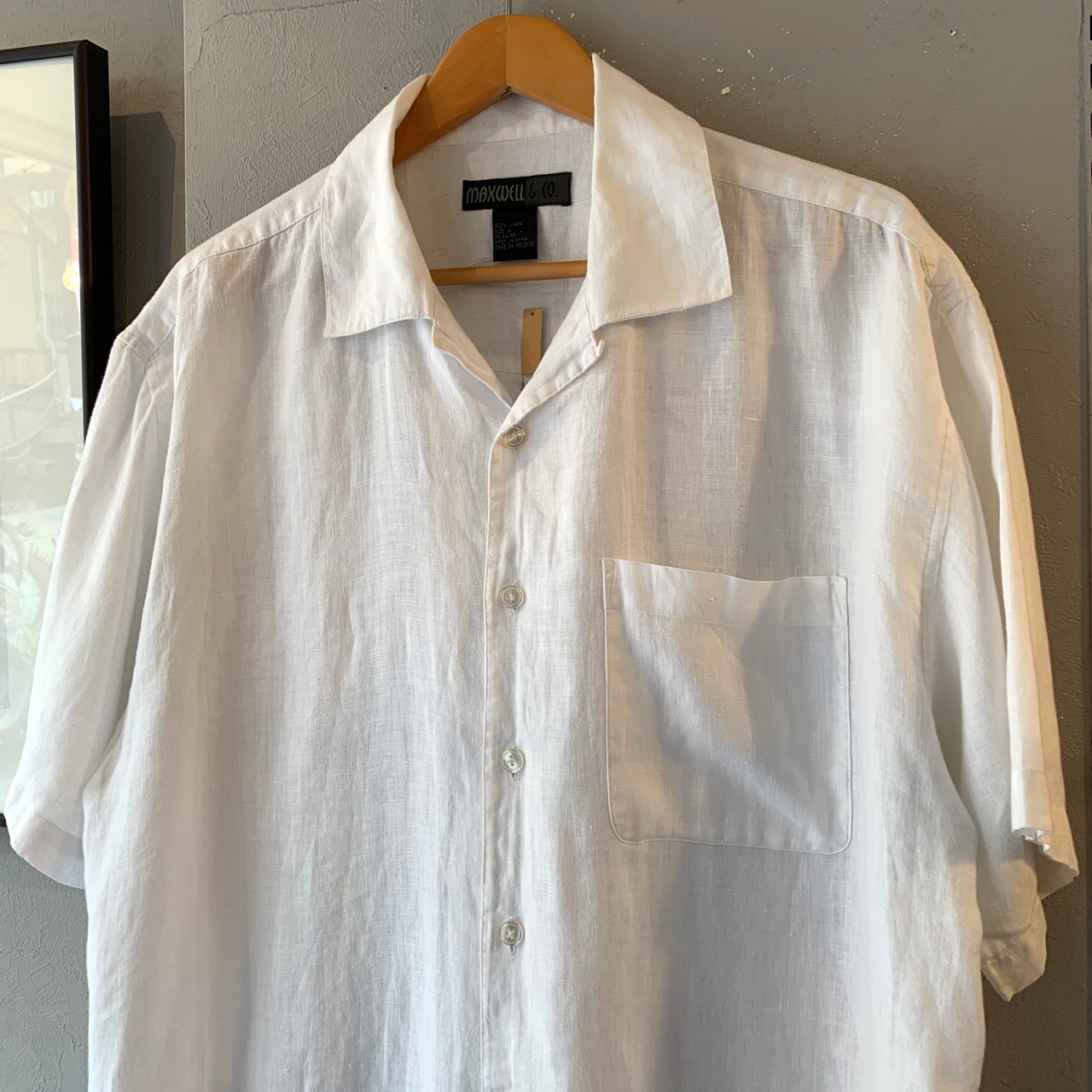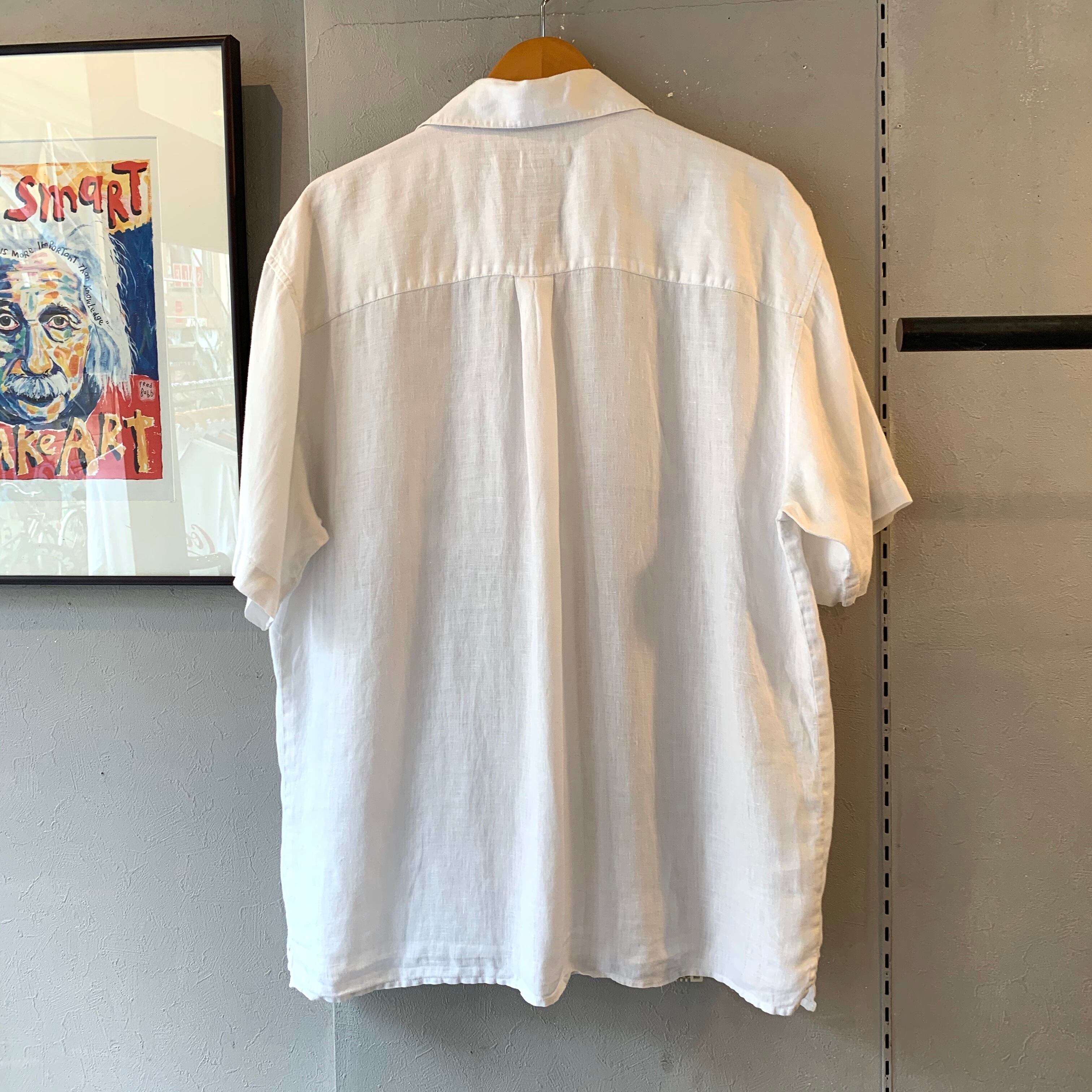 1990s 半袖リネンシャツ オープンカラーシャツ 白 L