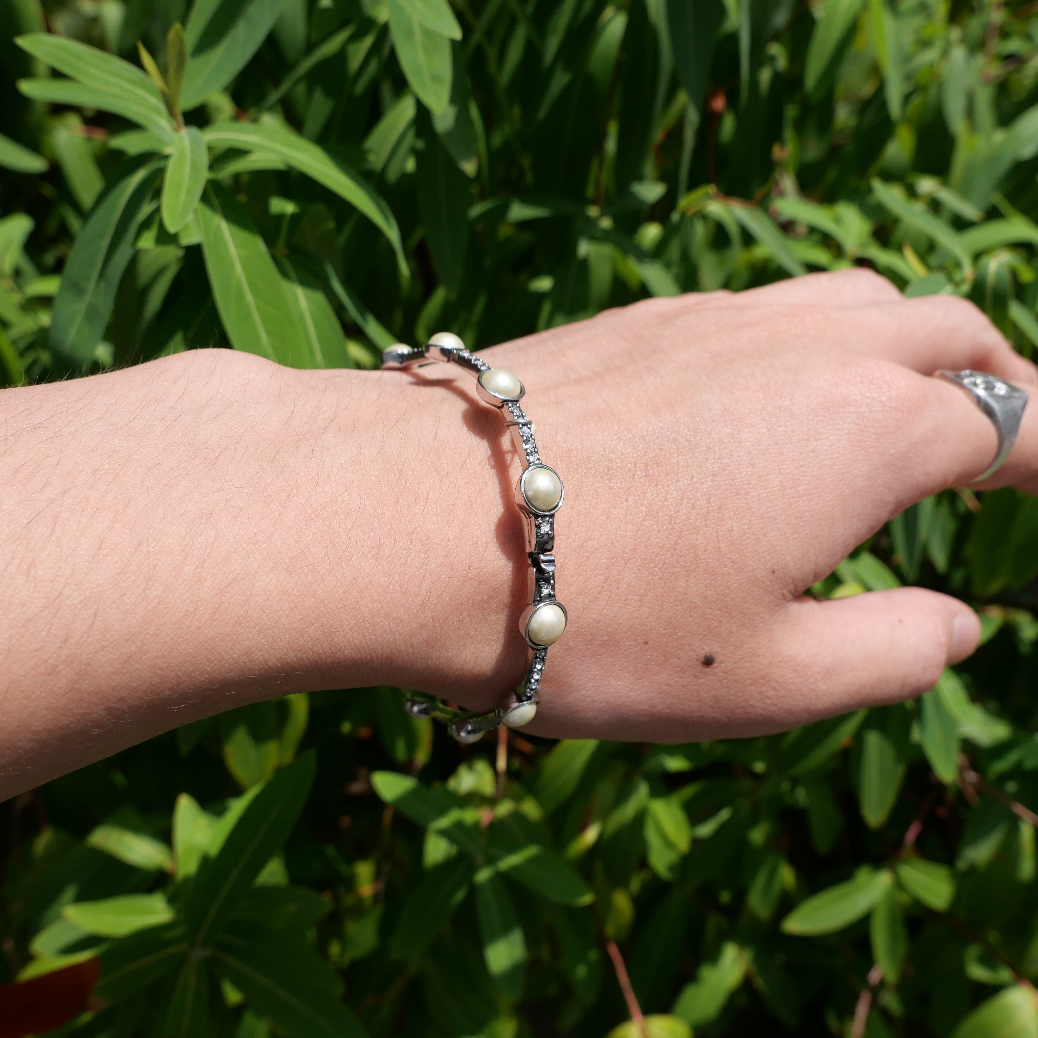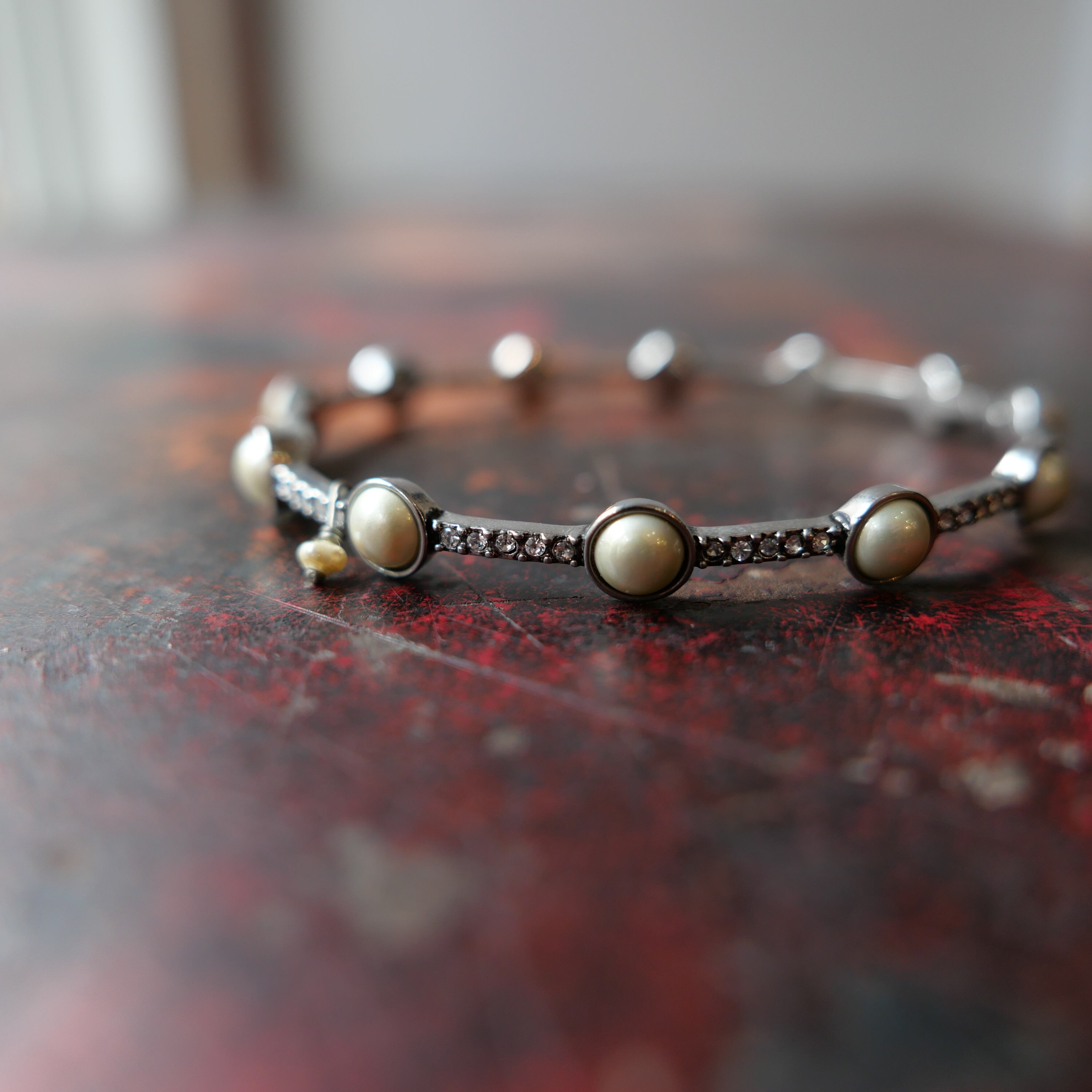 80s MONETモネ パールモチーフブレスレット シルバー 内円周19.5cm