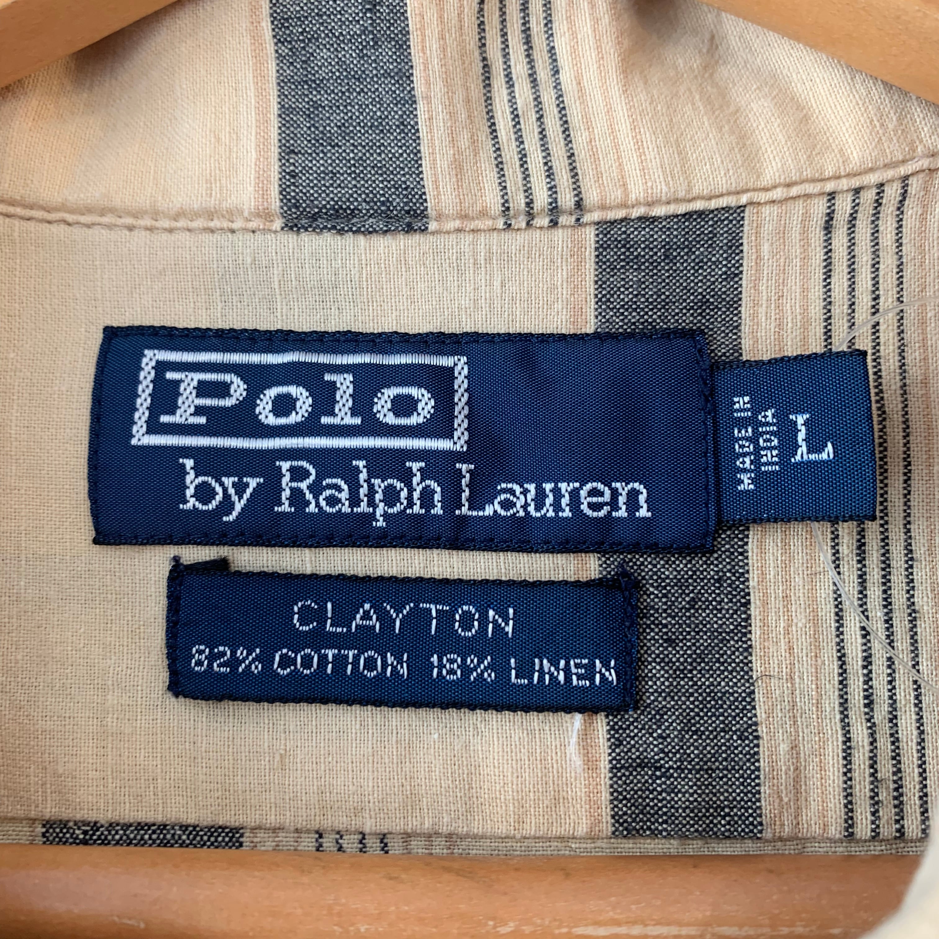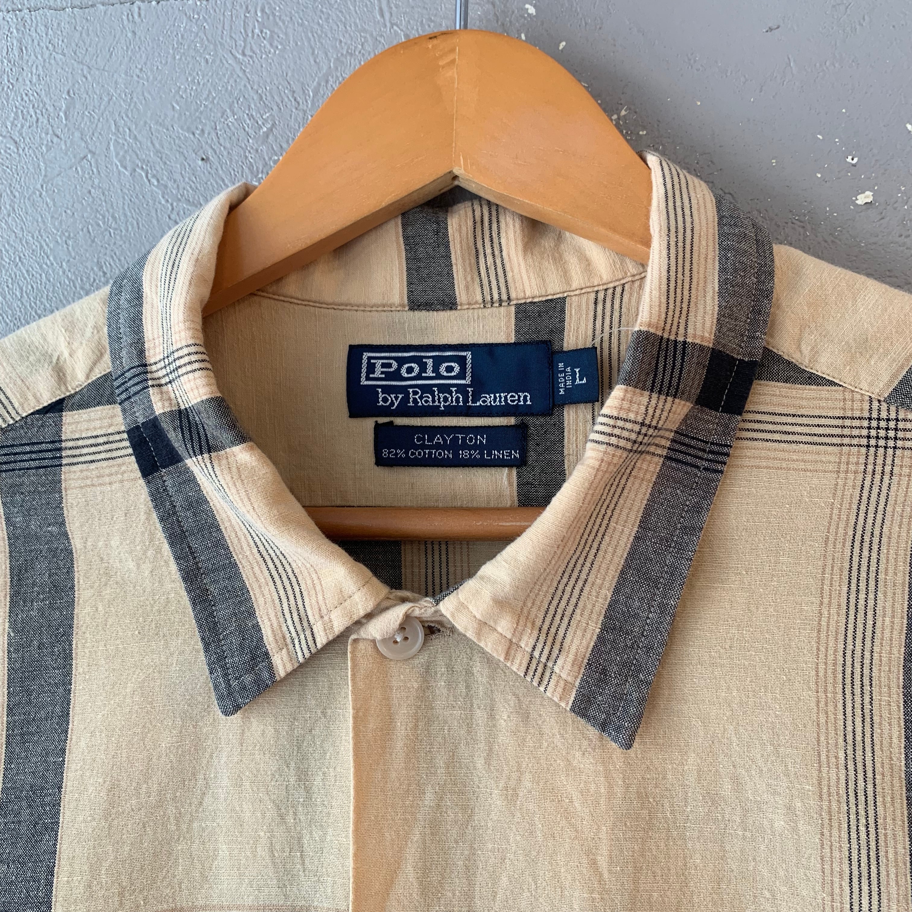 90s ラルフローレン 開襟シャツ CLAYTON コットン×リネン ベージュベース L