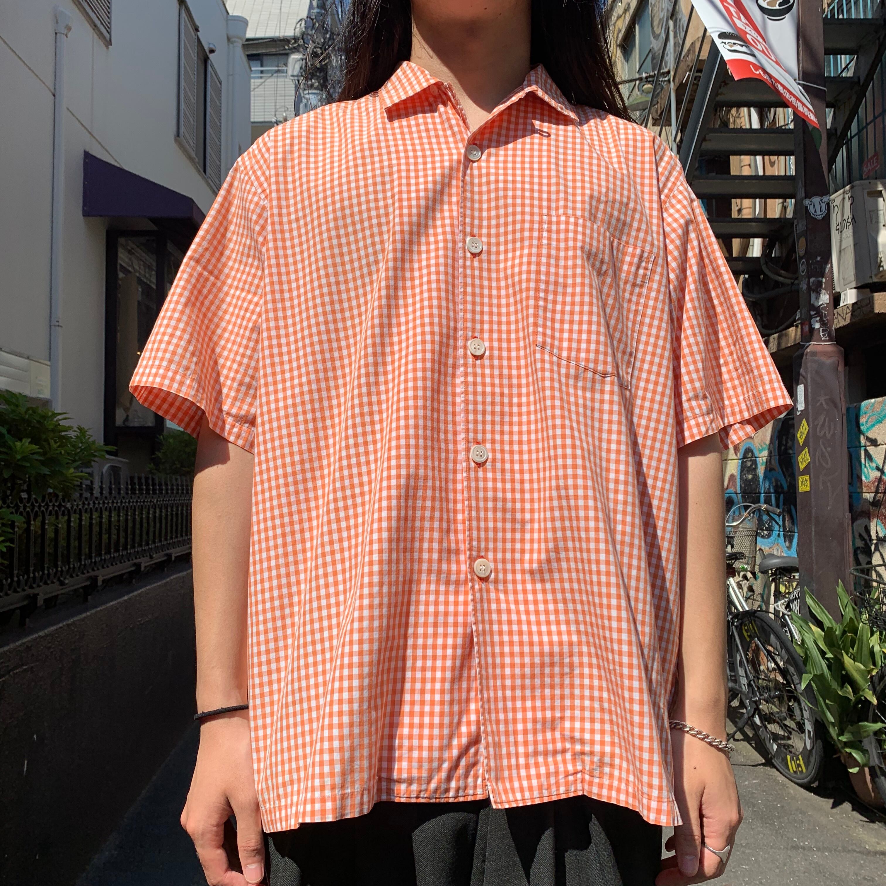 AD1994 コムデギャルソンオム ギンガムチェック ループカラーシャツ ホワイト×オレンジ XL程度