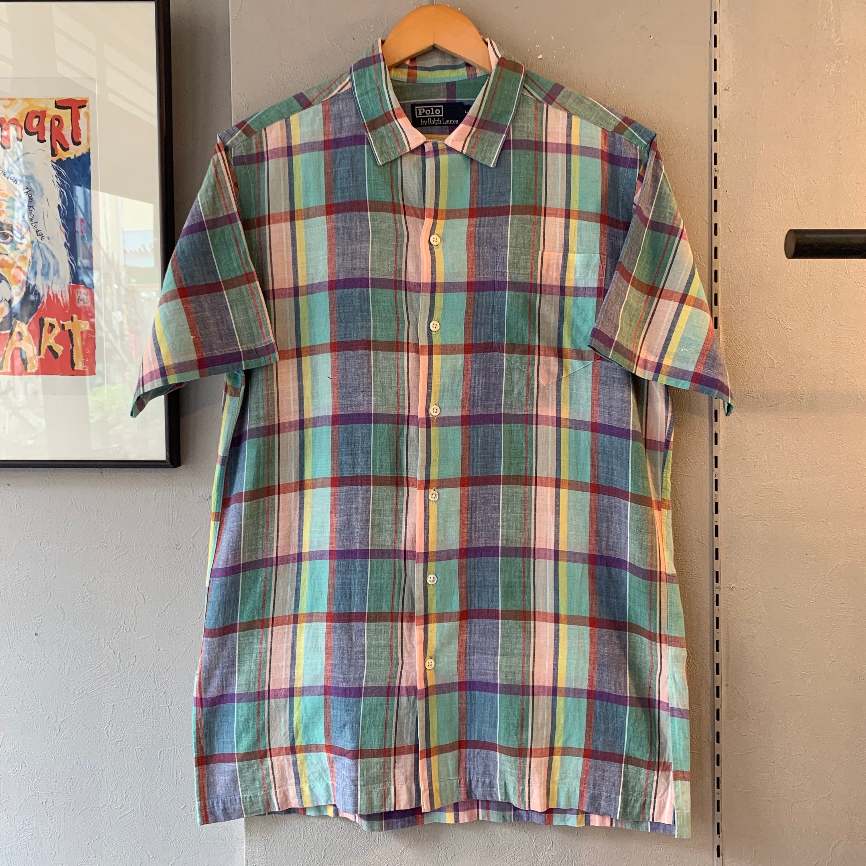 90s ラルフローレン マドラスチェック ループカラーシャツ L