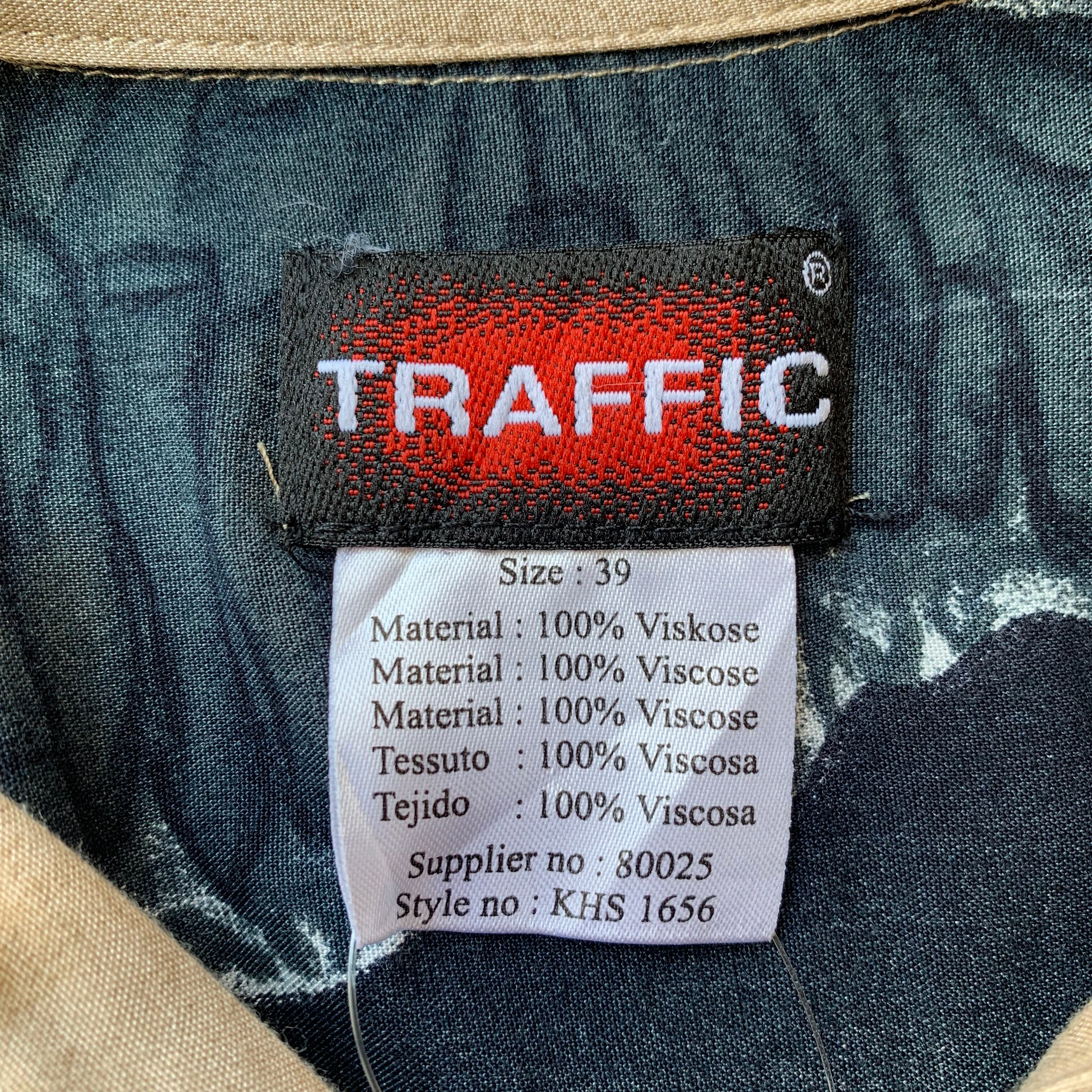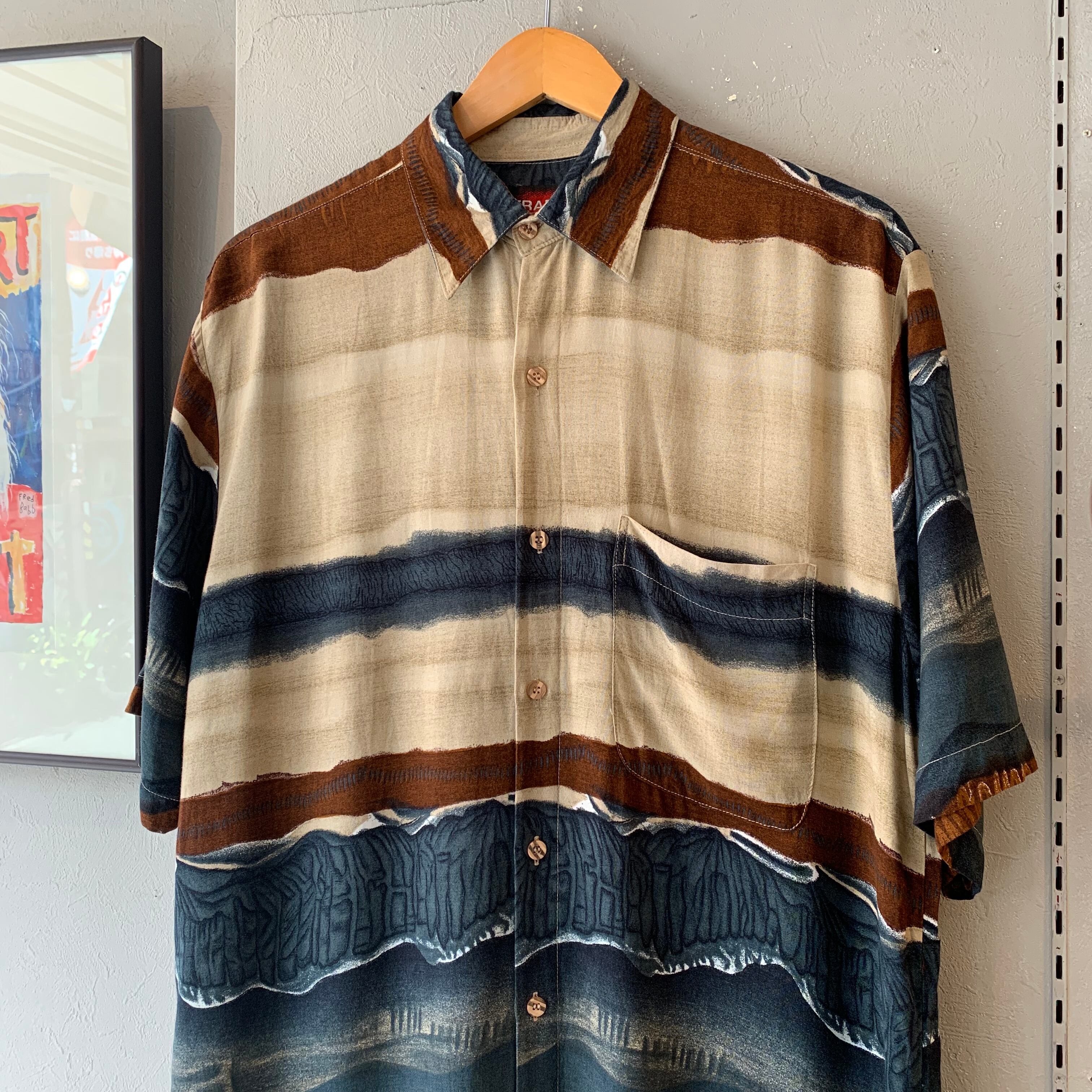 90s ビスコースレーヨン 柄シャツ ボーダー ベージュベース L程度