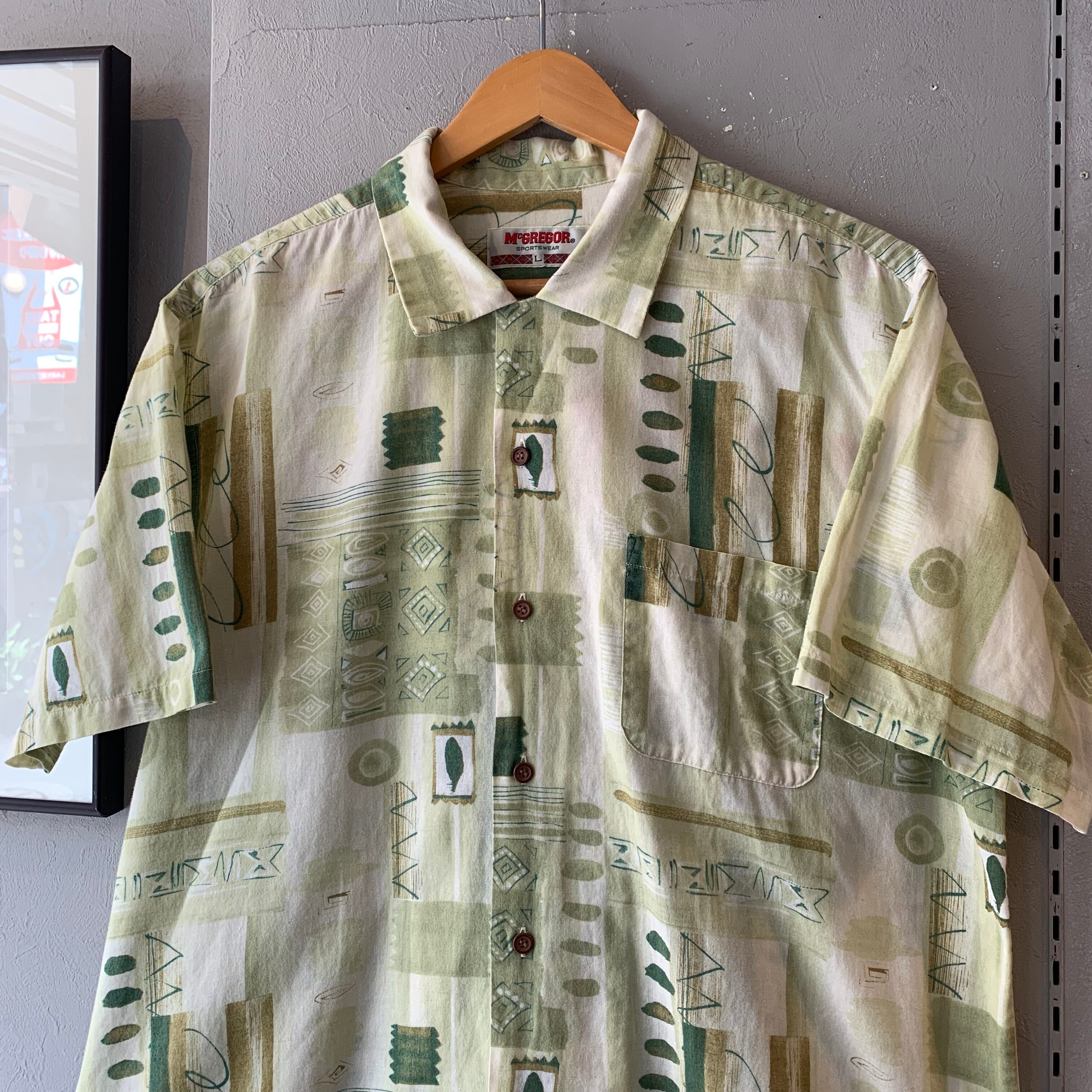 90s マックレガー コットン ループカラー柄シャツ アイボリーベース L