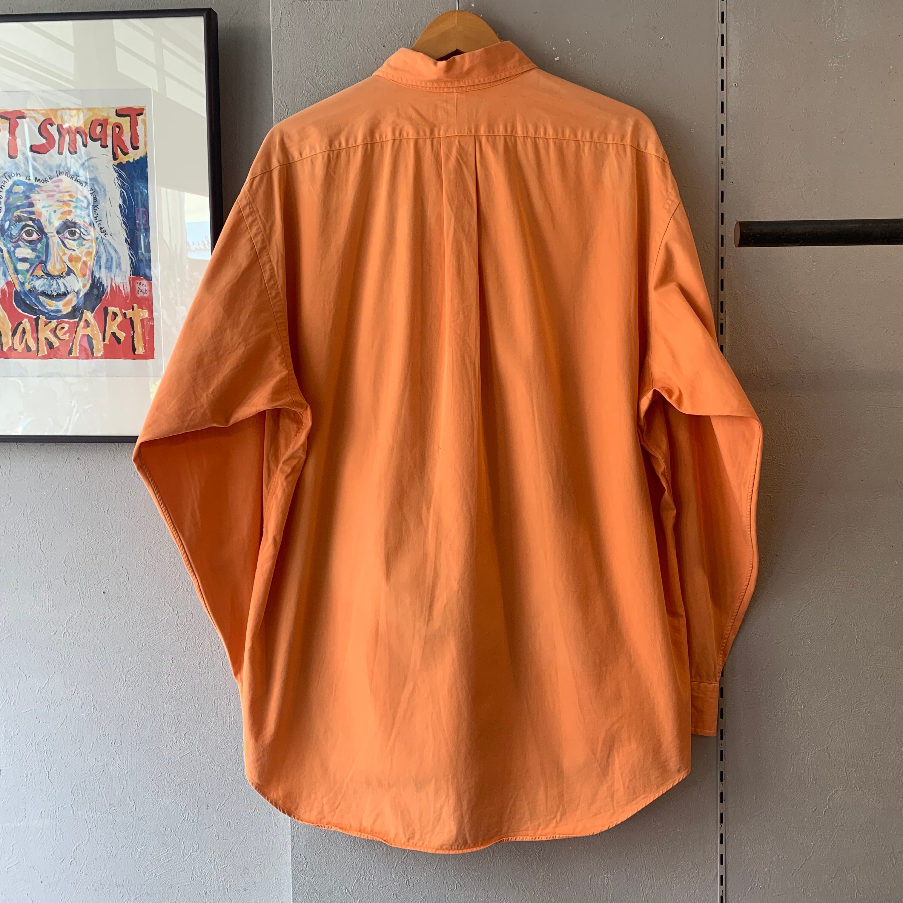 90s ラルフローレン コットン BDシャツ BIG SHIRT 裾ポニー ライトオレンジ M