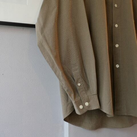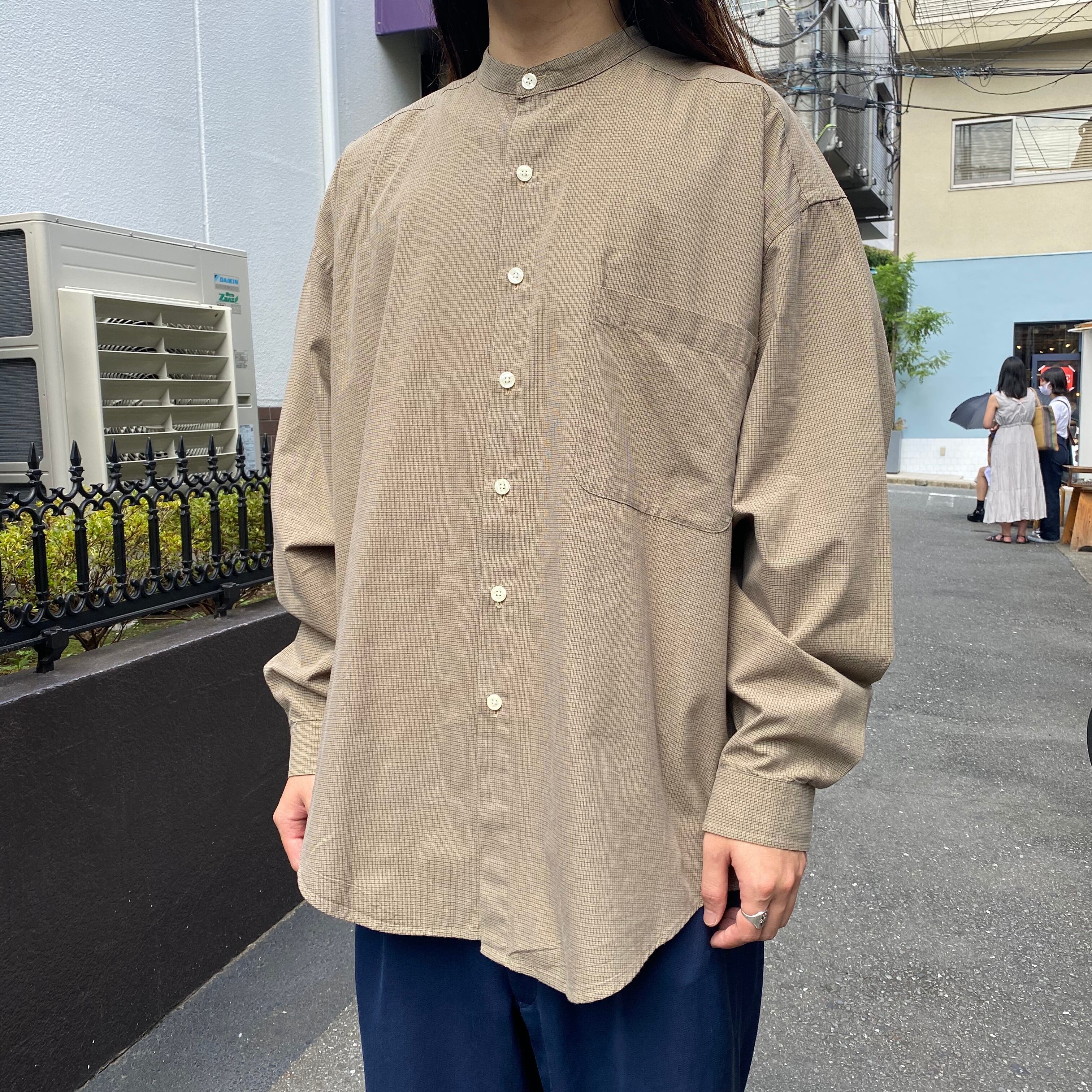 90s スタンドカラーギンガムチェック シャツ コットン ベージュベース