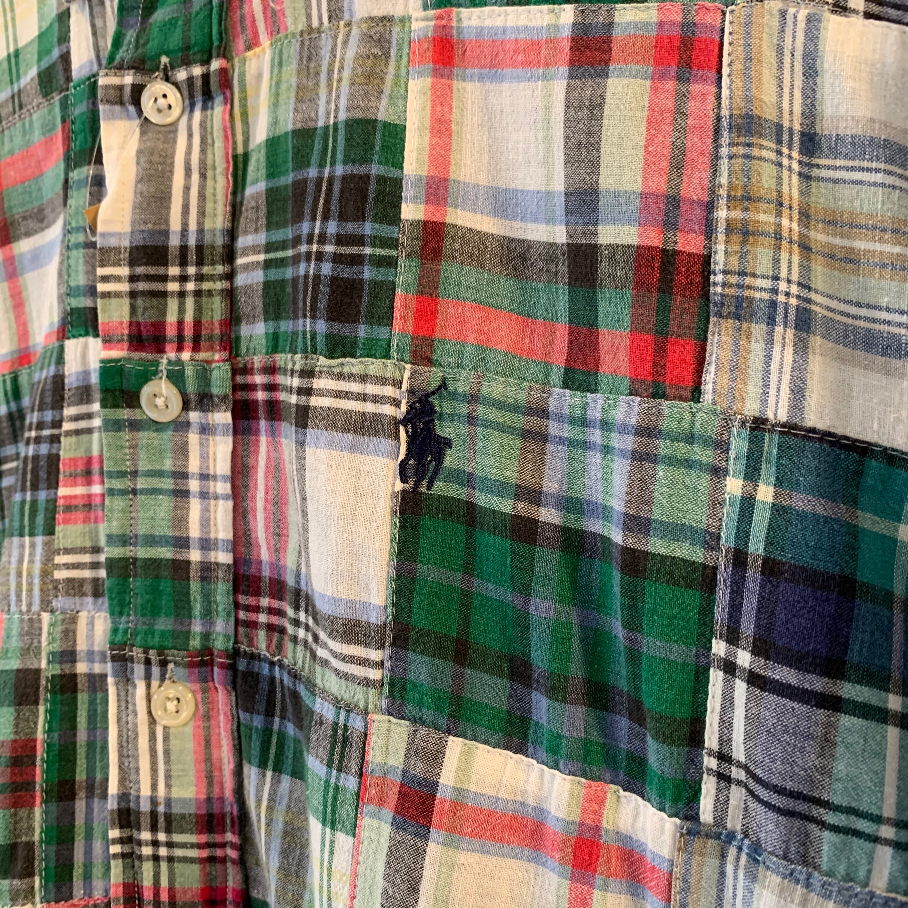 90s ラルフローレン パッチワーク ボタンダウンシャツ BLAKE 緑 赤 白