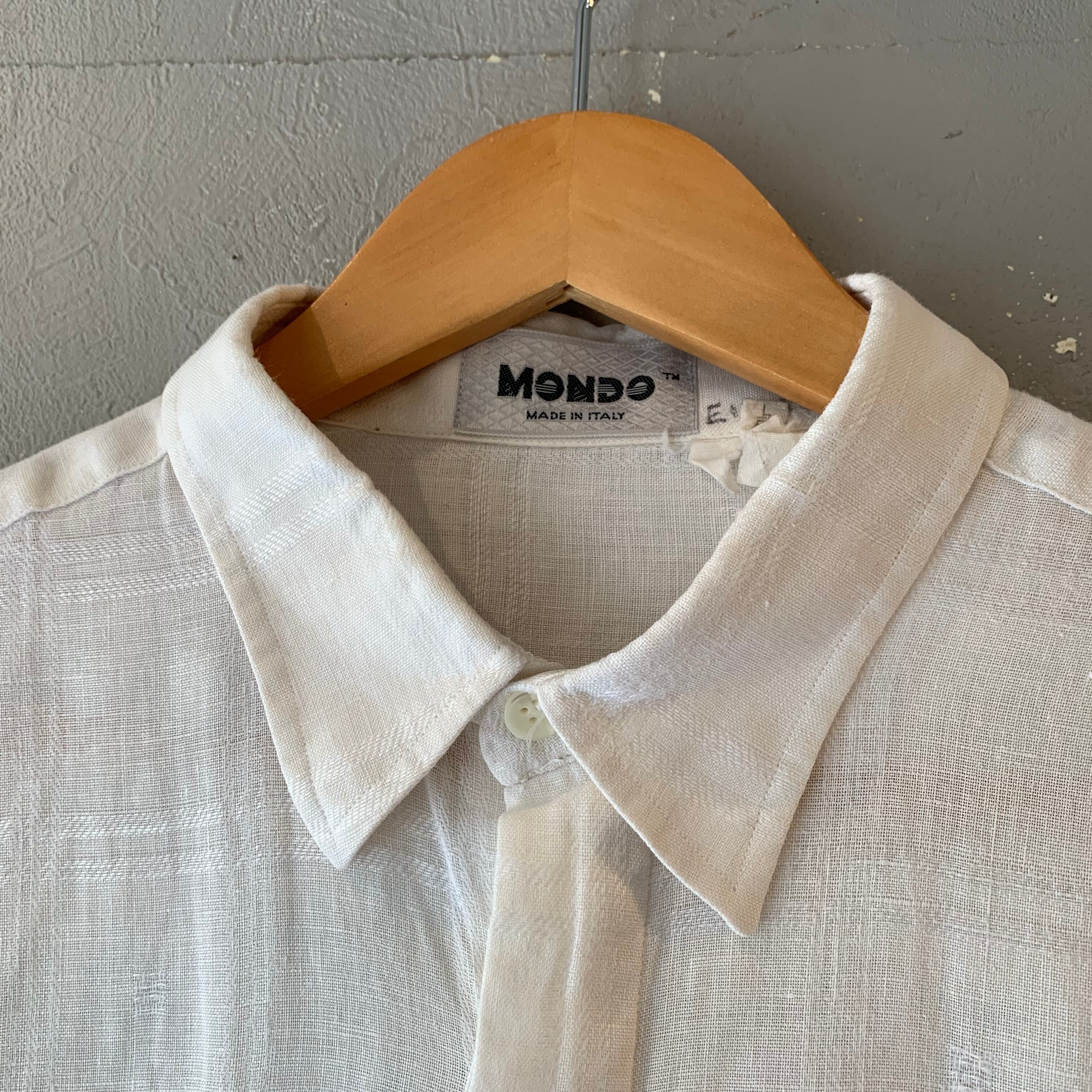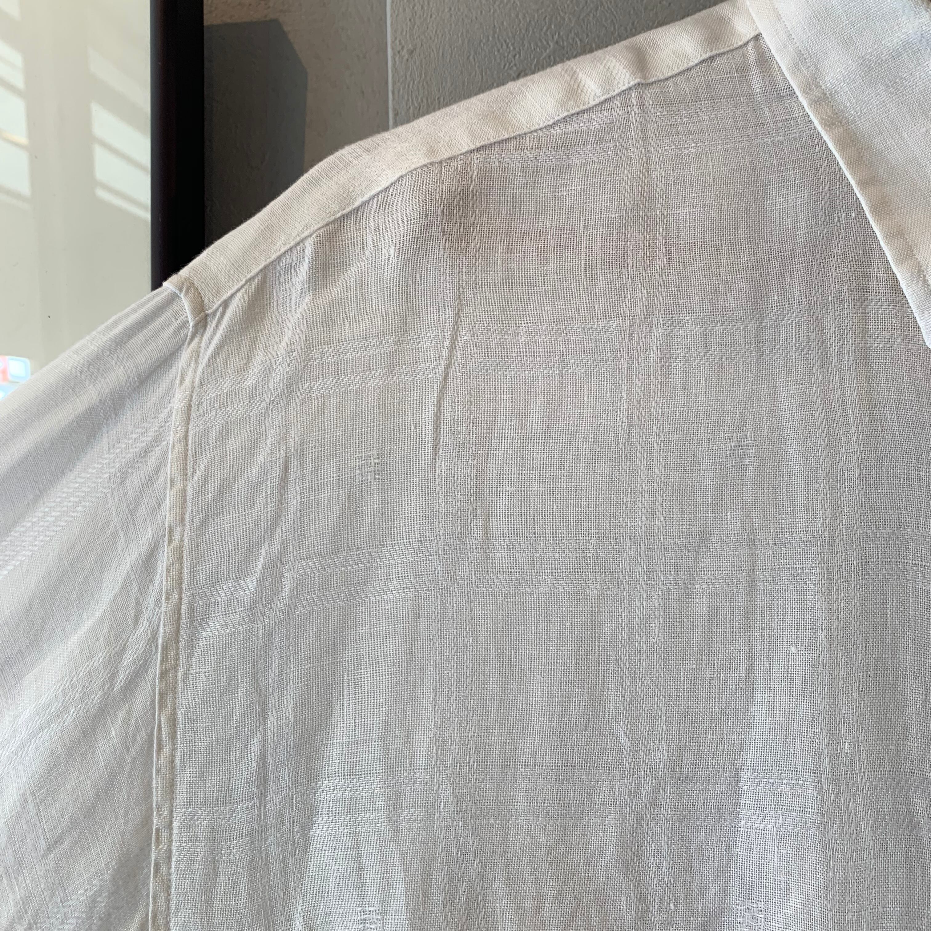 80s 比翼リネンシャツ チェック柄 デカポケ イタリア製 ホワイト L