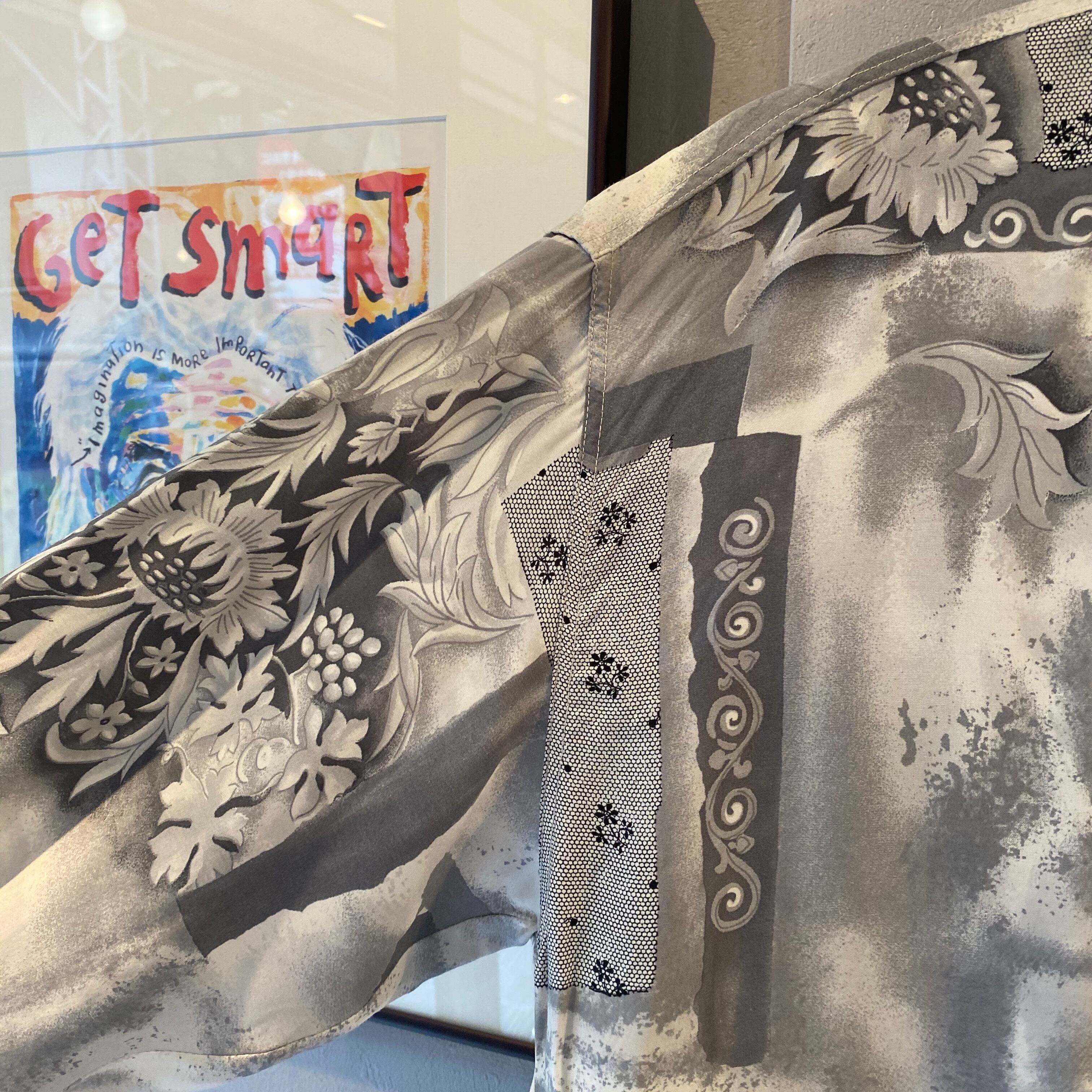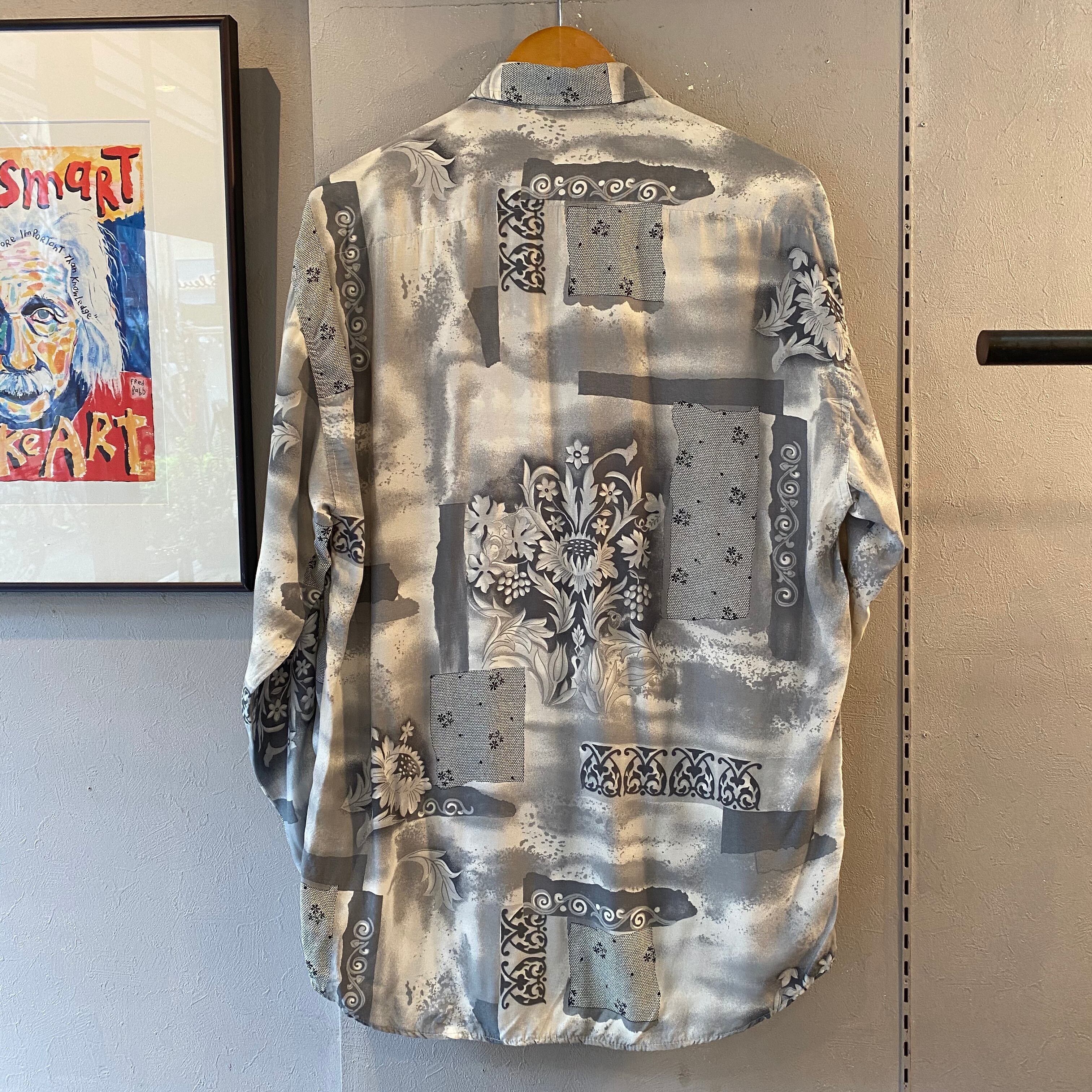 90s パッチワーク風 比翼シャツ レーヨン イタリア製 ライトグレー S(M程度)