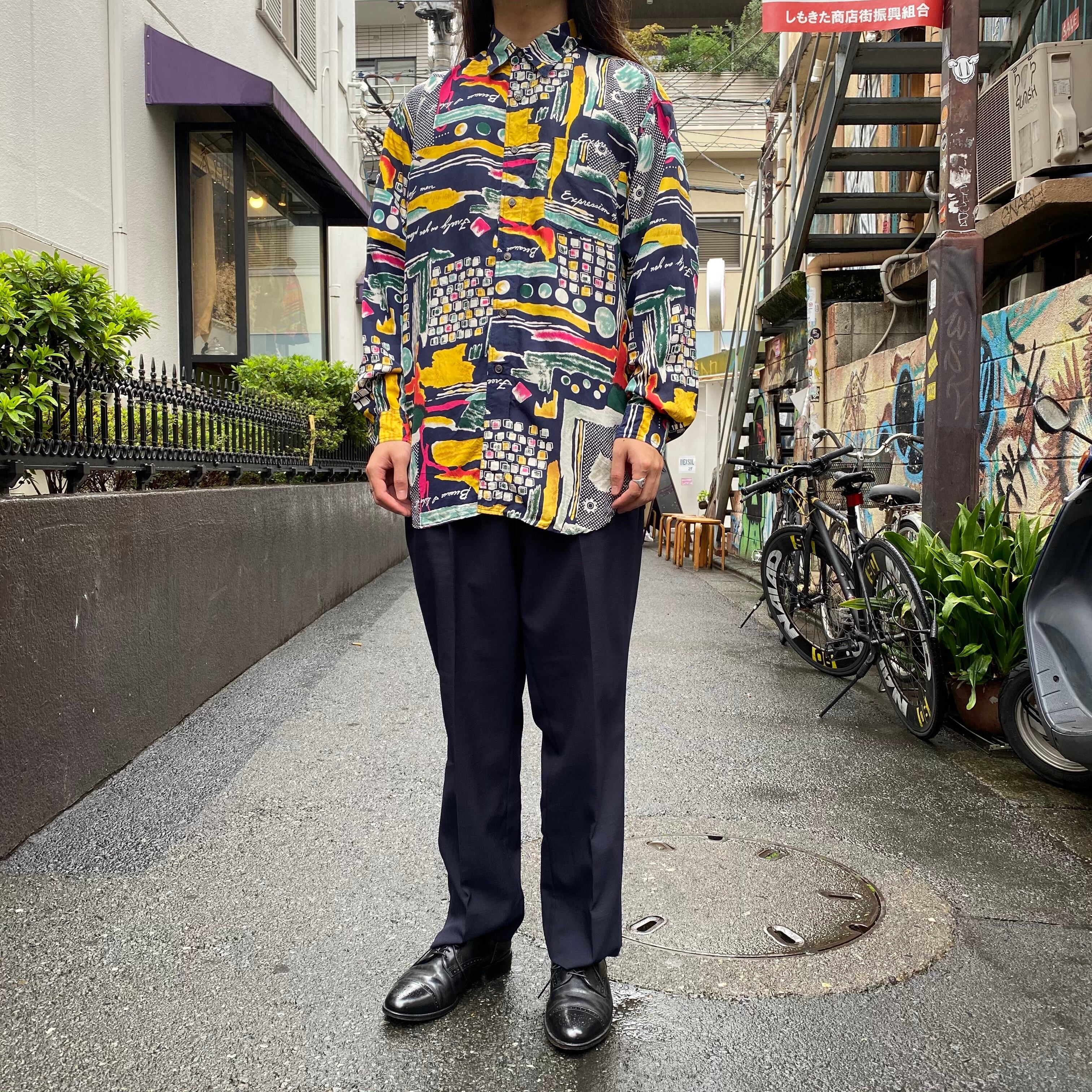 90s プリント 柄シャツ マルチカラー ネイビーベース
