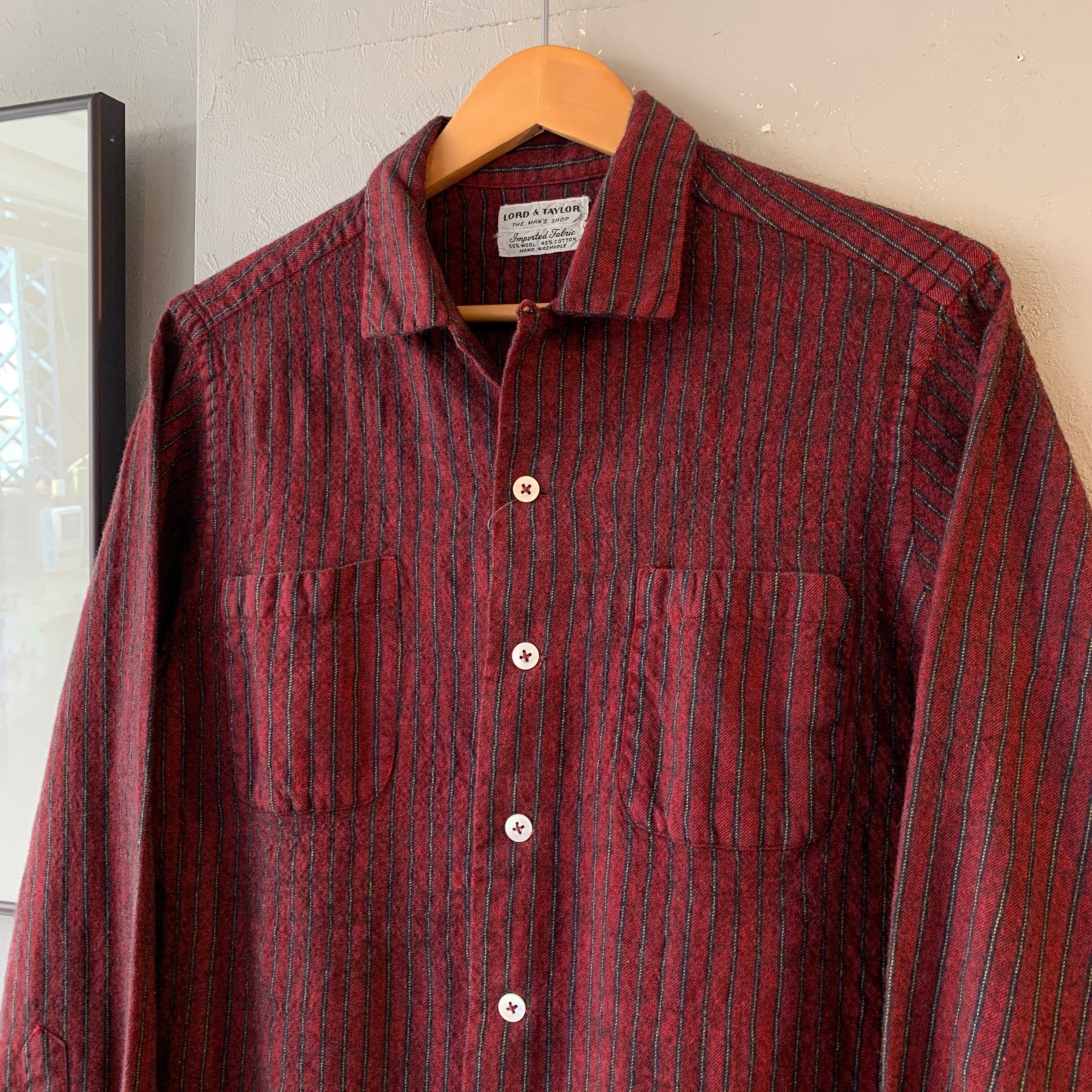 60s ループカラー開襟シャツ コットン×ウール ストライプ 赤 黒