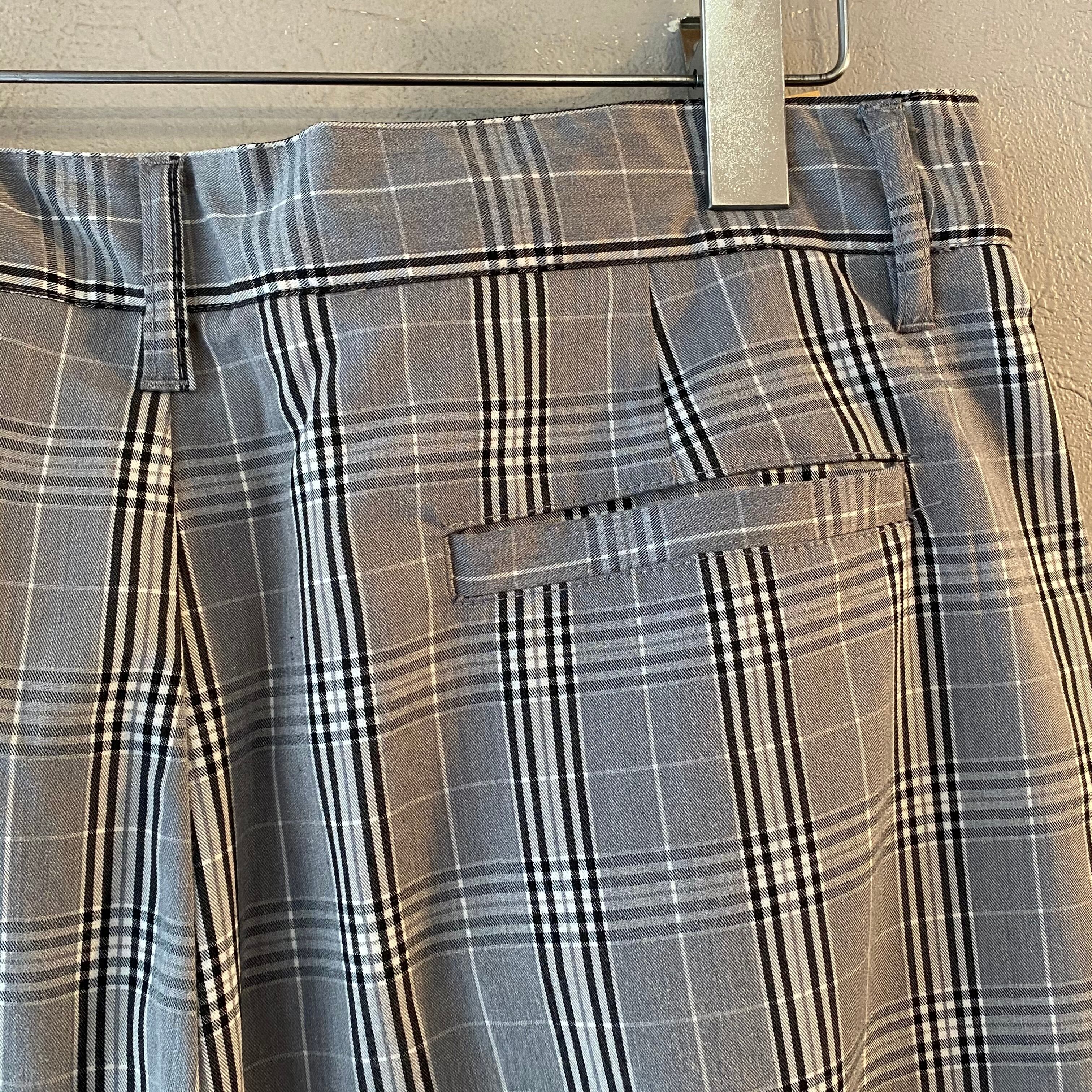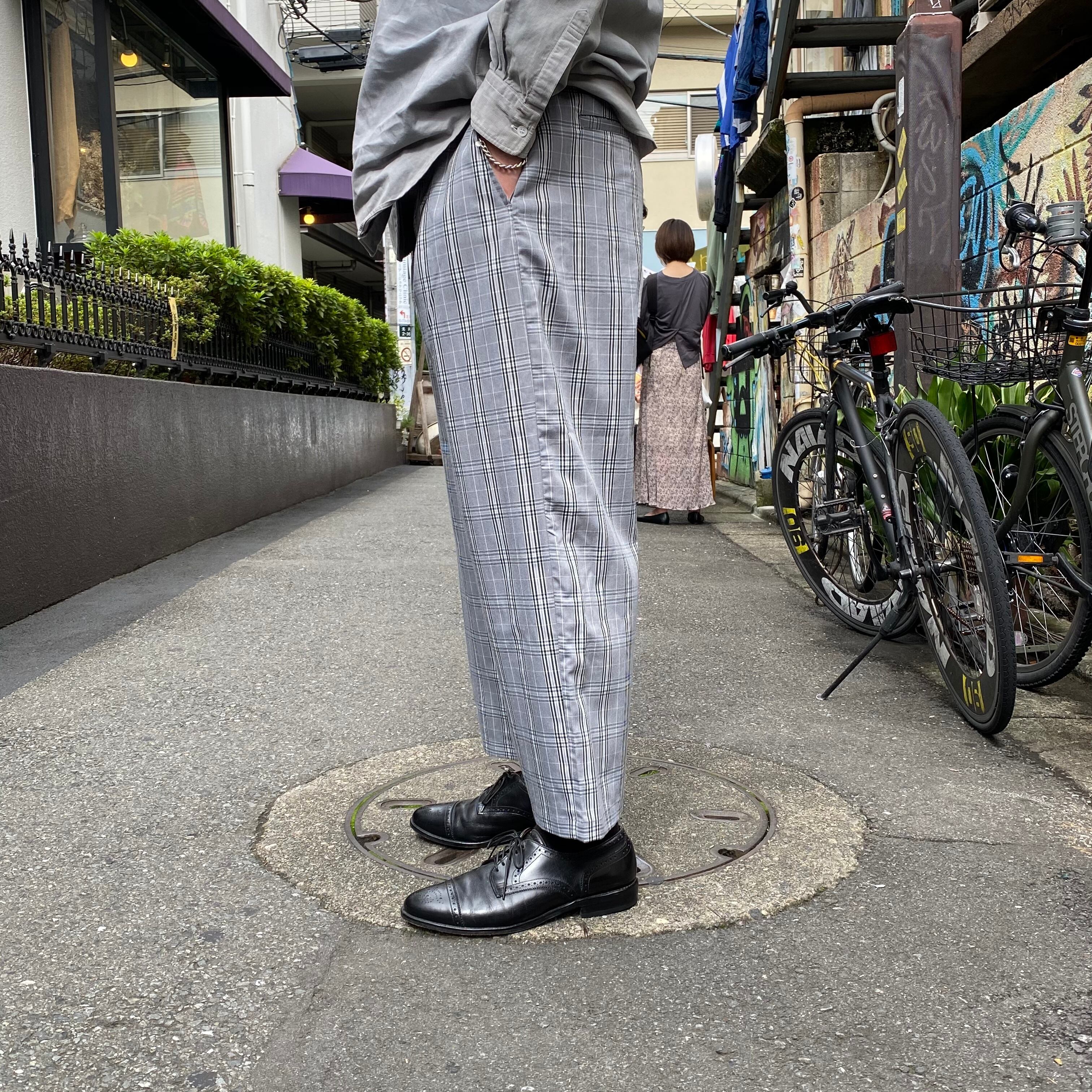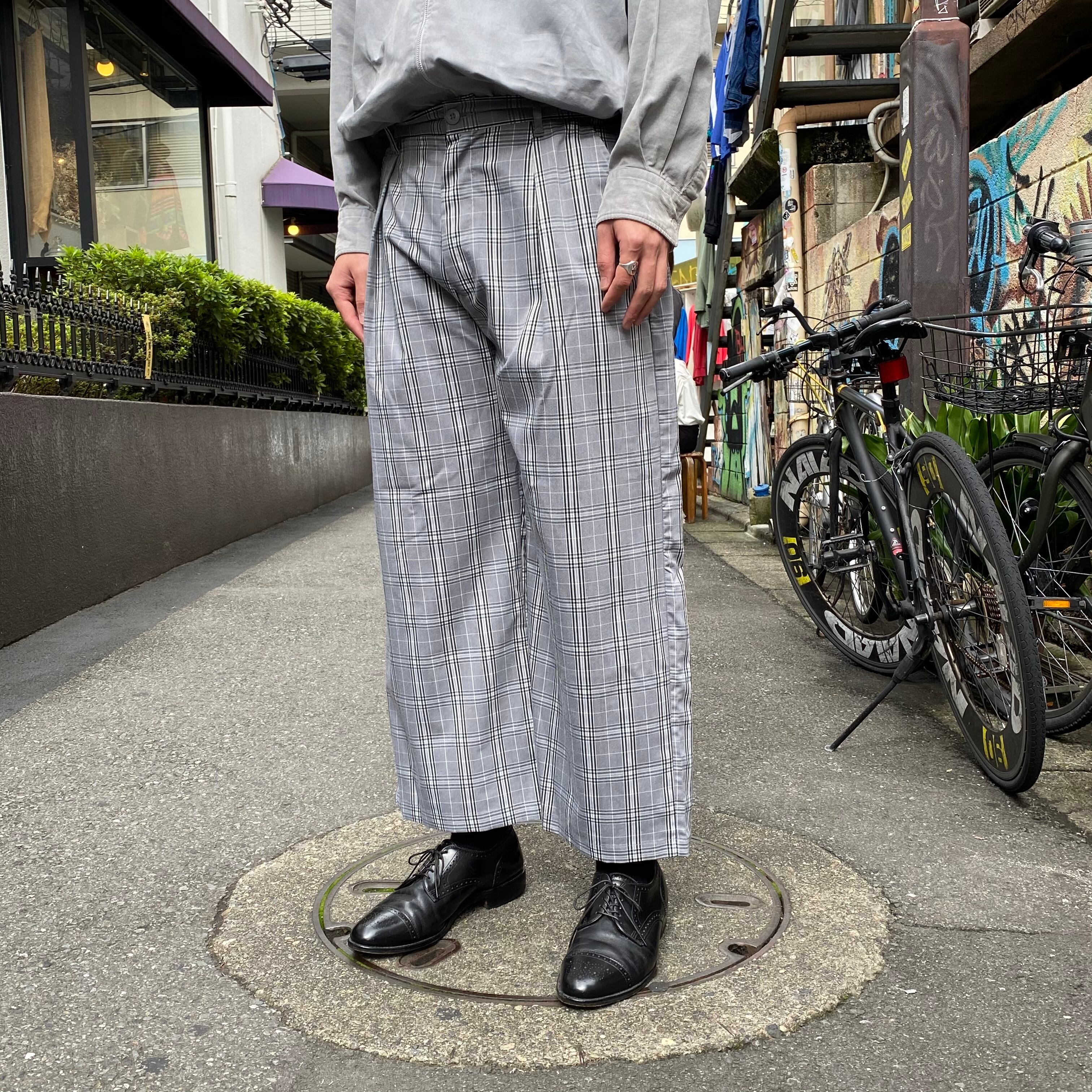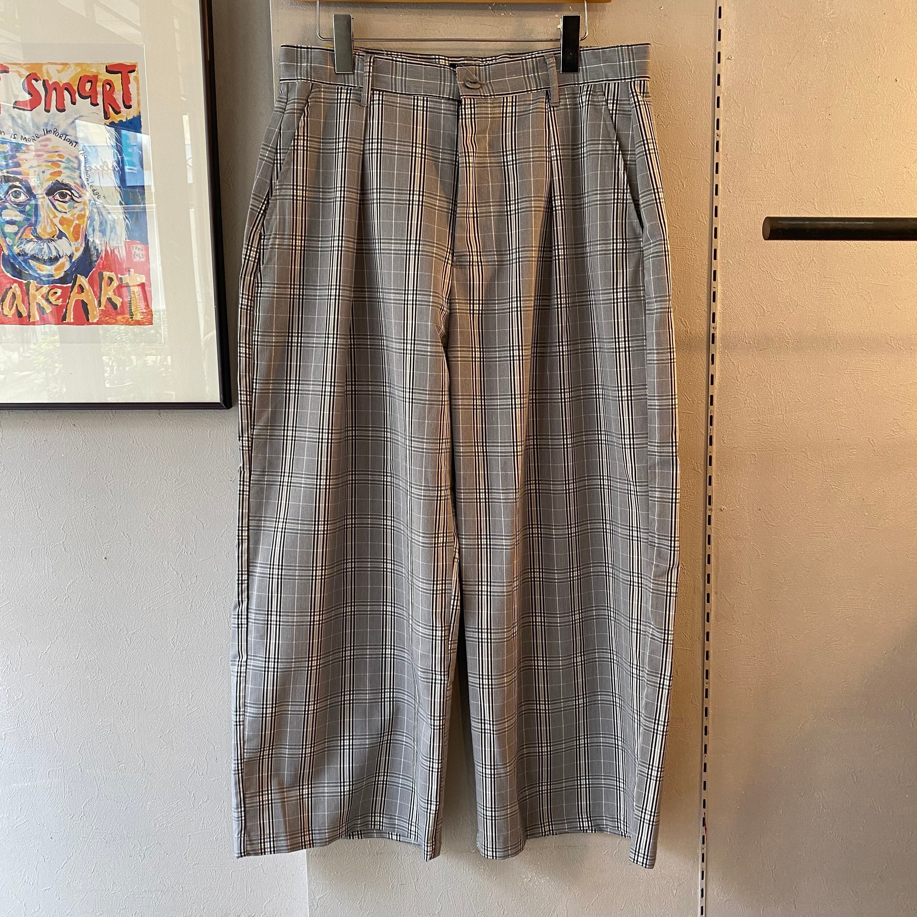 90s チェック ワイドスラックス グレー コットン素材 W32L25