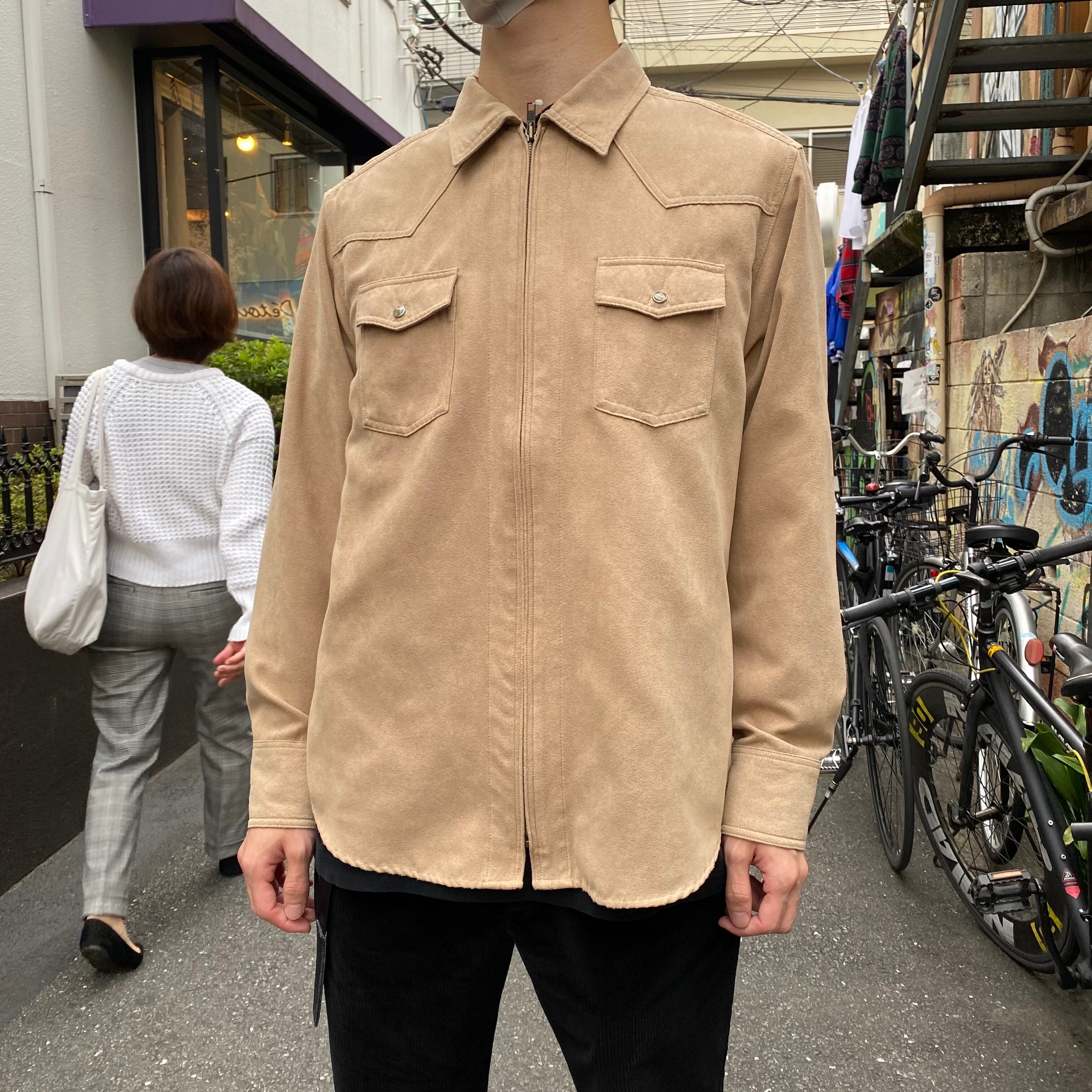 90s フェイクスウェード ジップアップ シャツ ベージュ